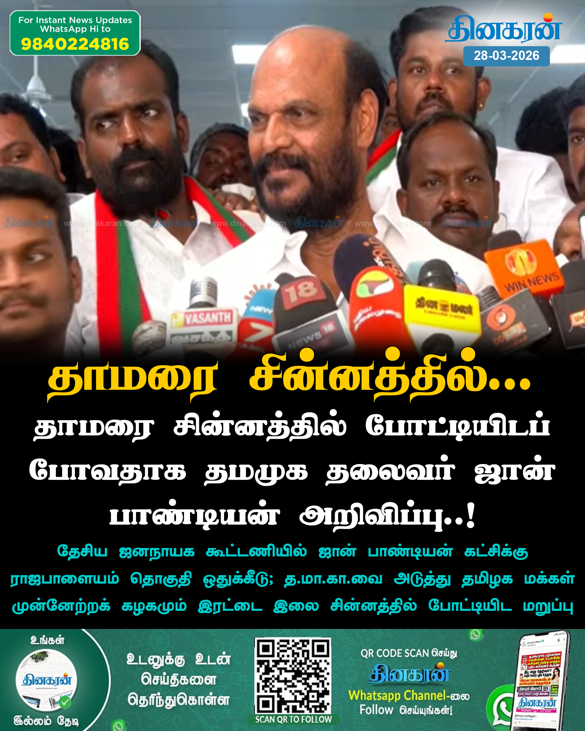 தாமரை சின்னம், போட்டி, தமமுக, ஜான் பாண்டியன், அறிவிப்பு