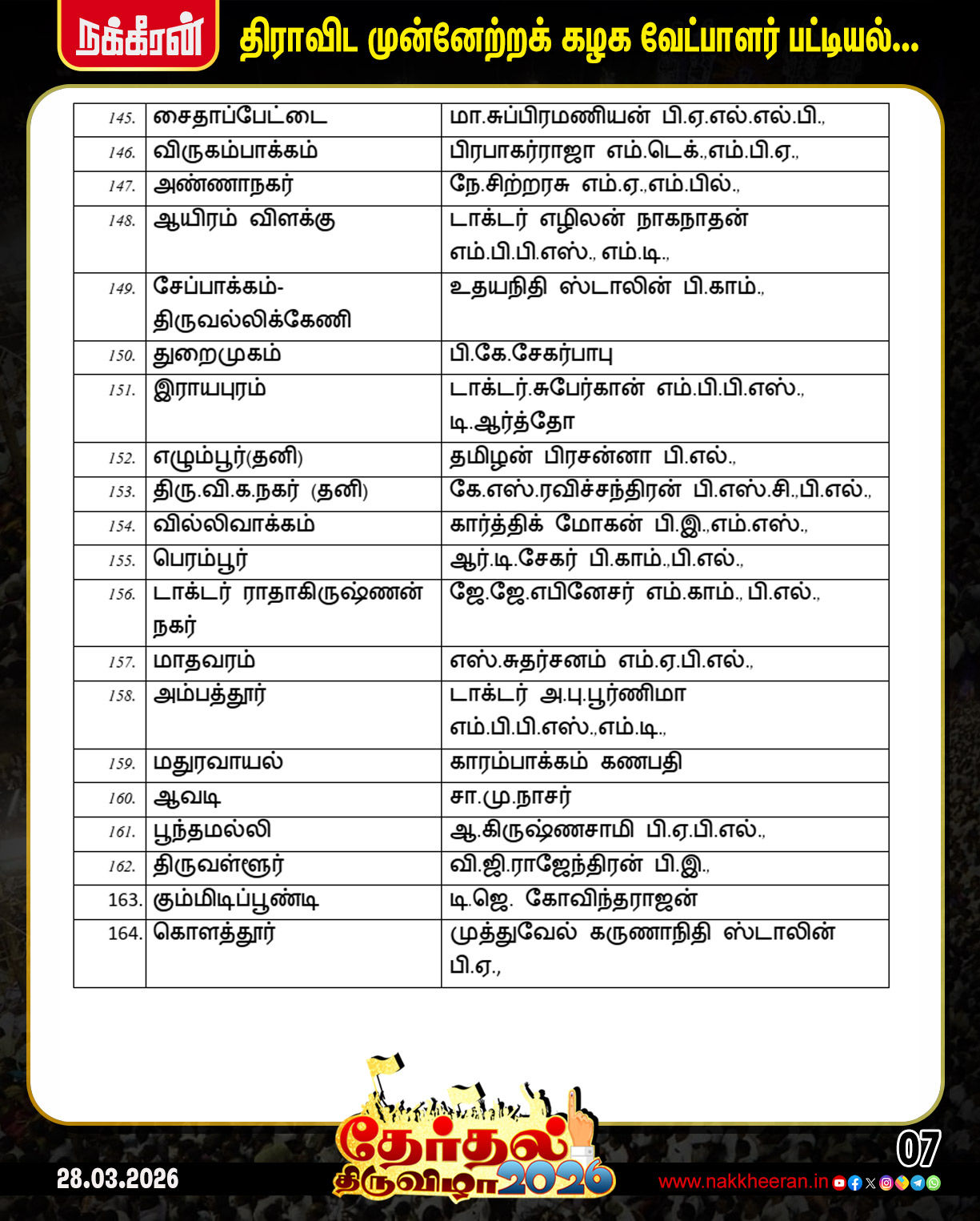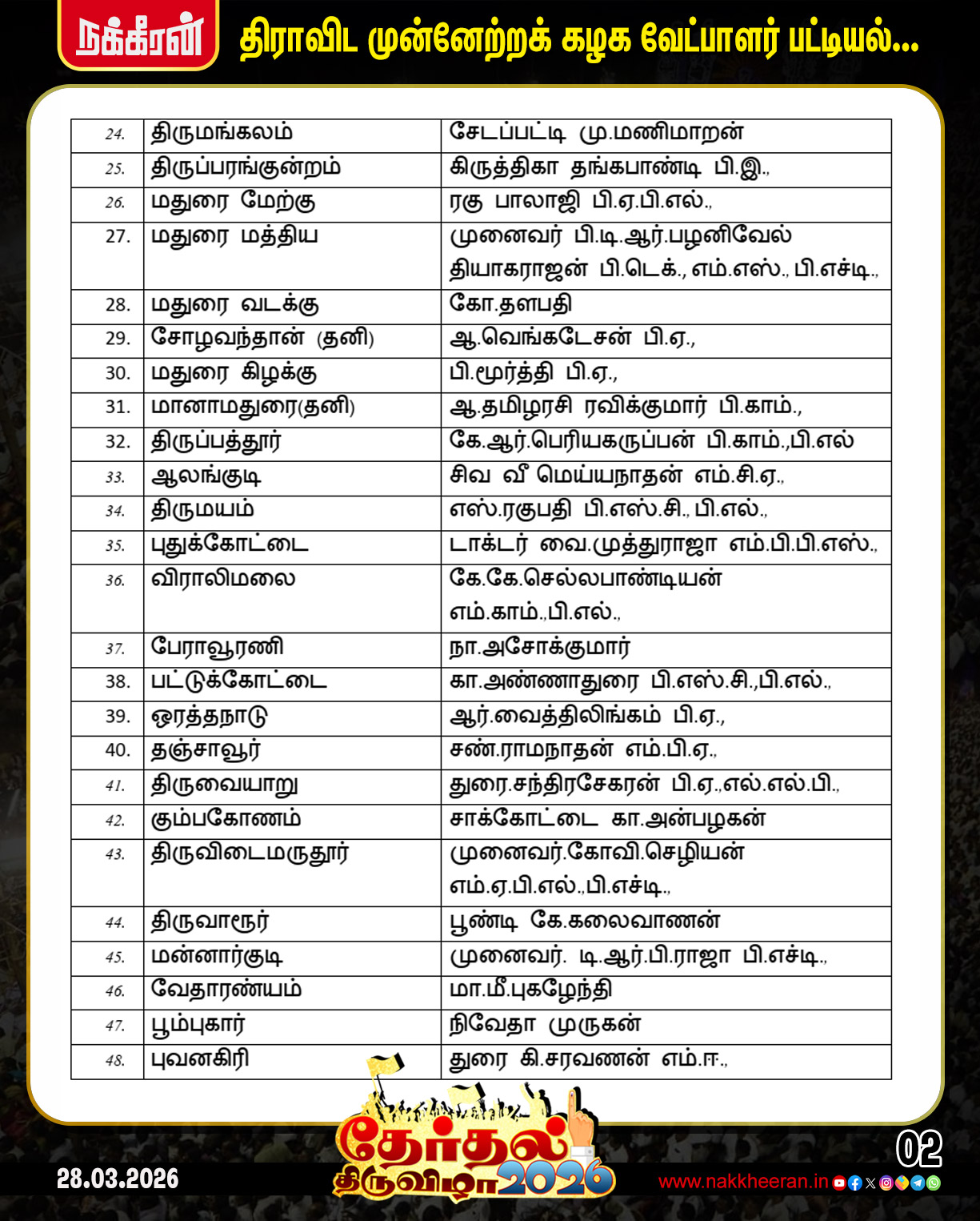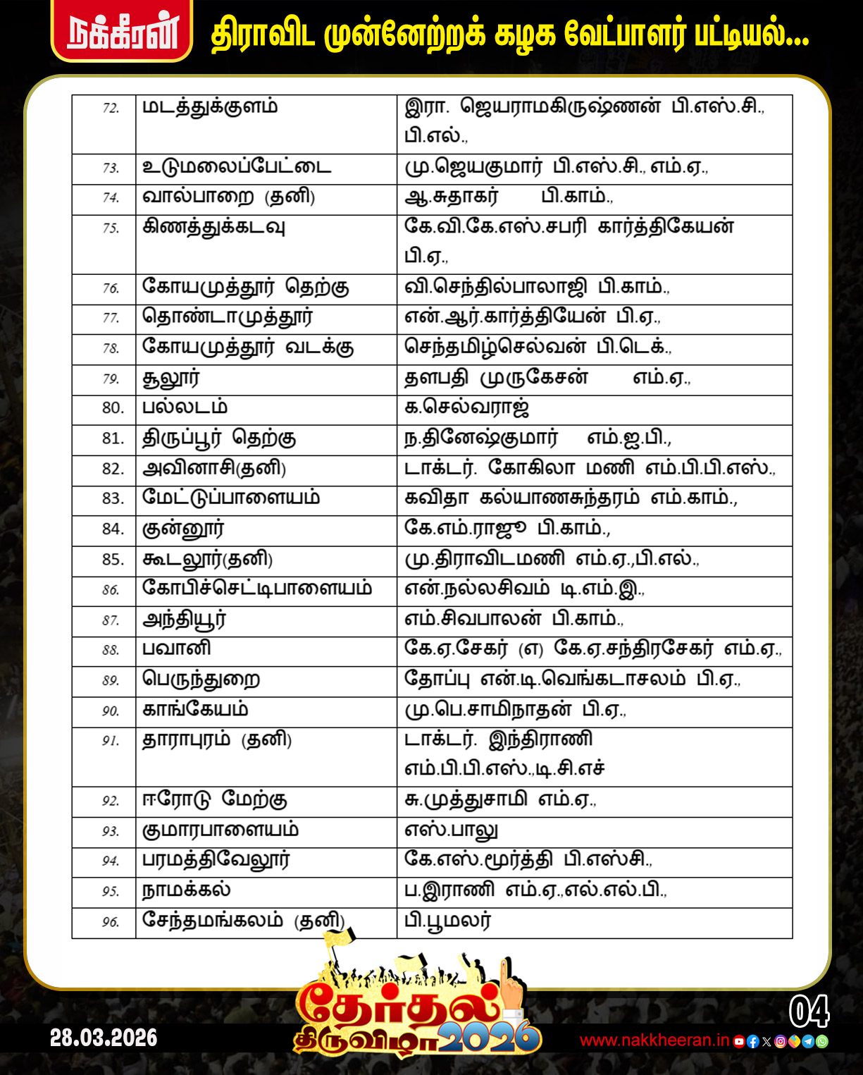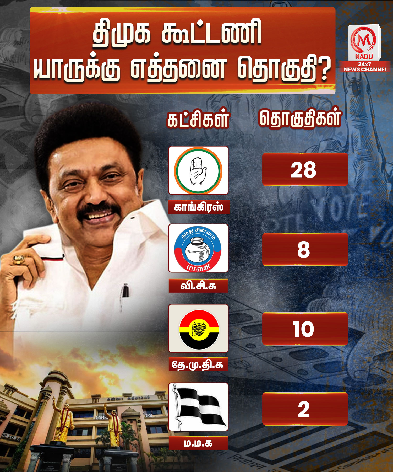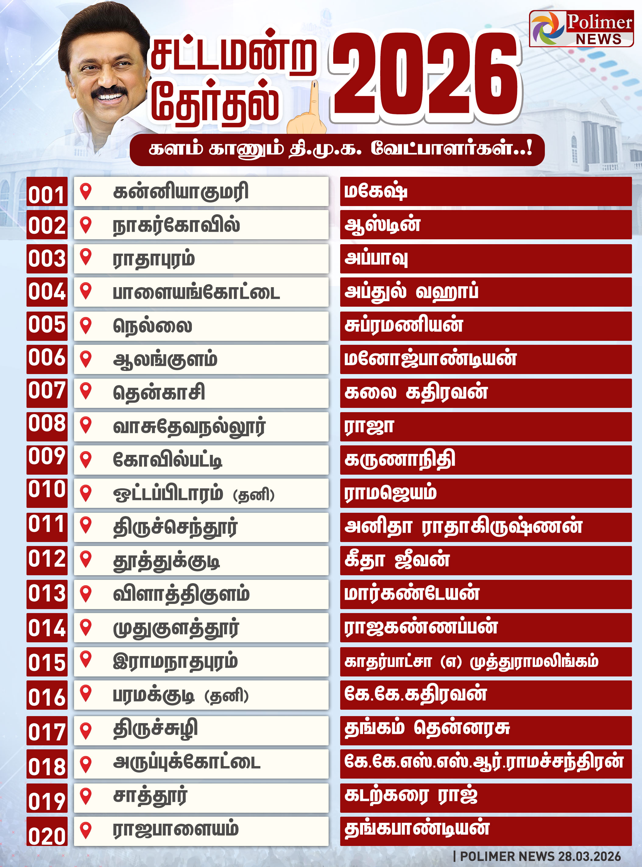 TN Election 2026 | தமிழக சட்டமன்ற தேர்தலில் திமுக போட்டியிடும் தொகுதிகள் மற்றும் வேட்பாளர்கள் பட்டியல் விவரம்..!