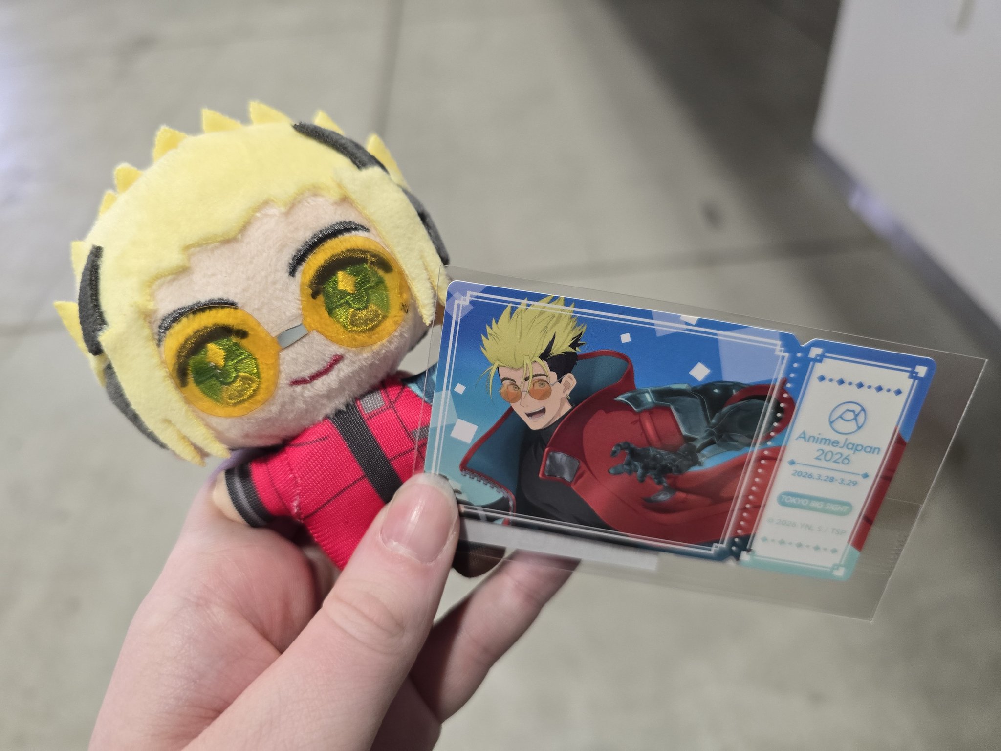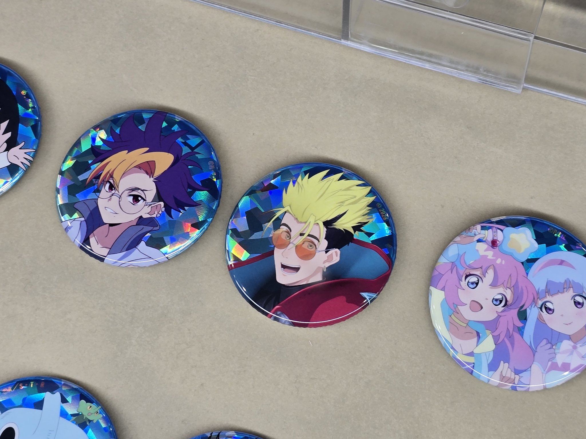 Merchandise hell at AnimeJapan. There's a holographic Vash in the badge gacha... I tried gacha 10 times, didn't get a single Vash... 🥹