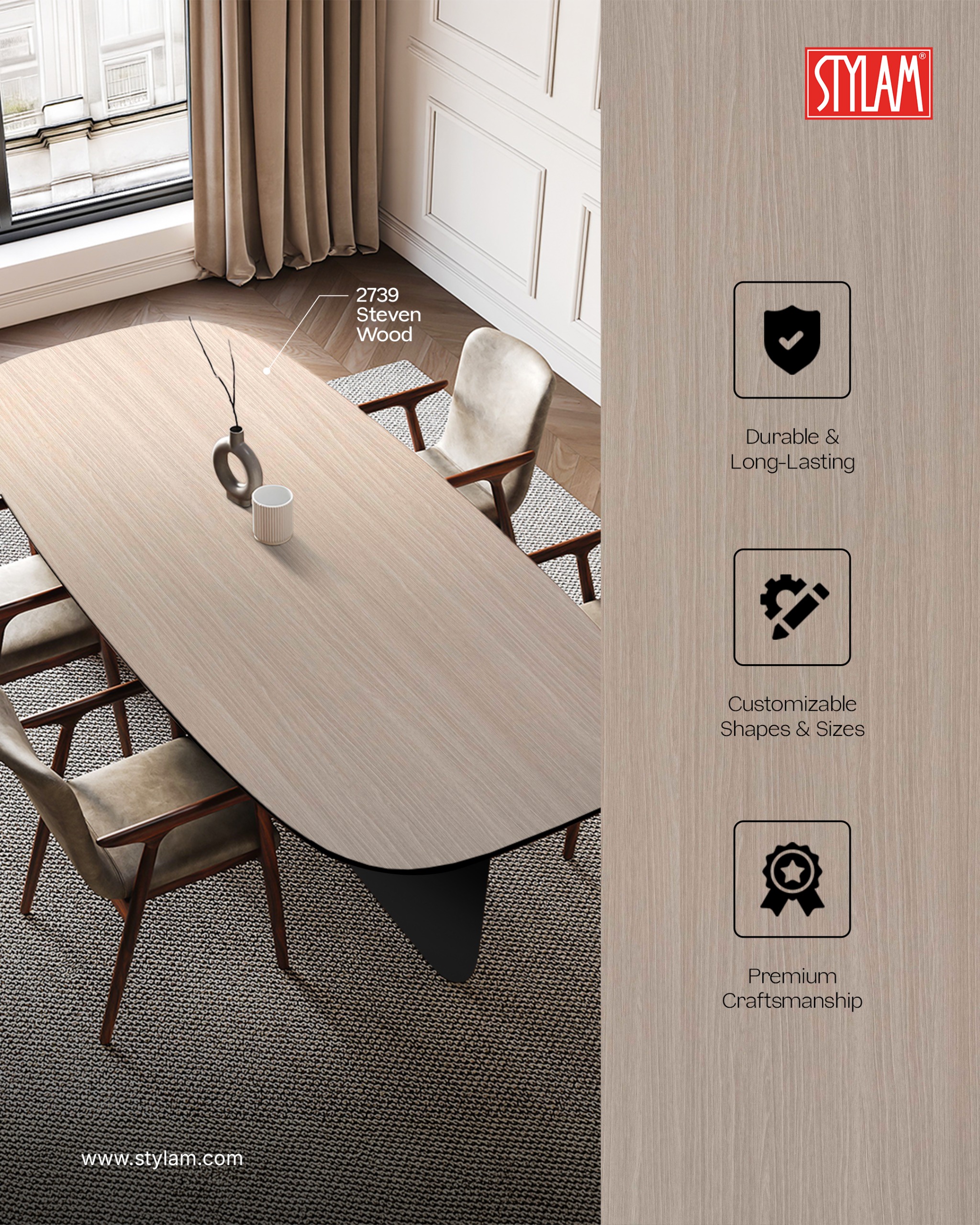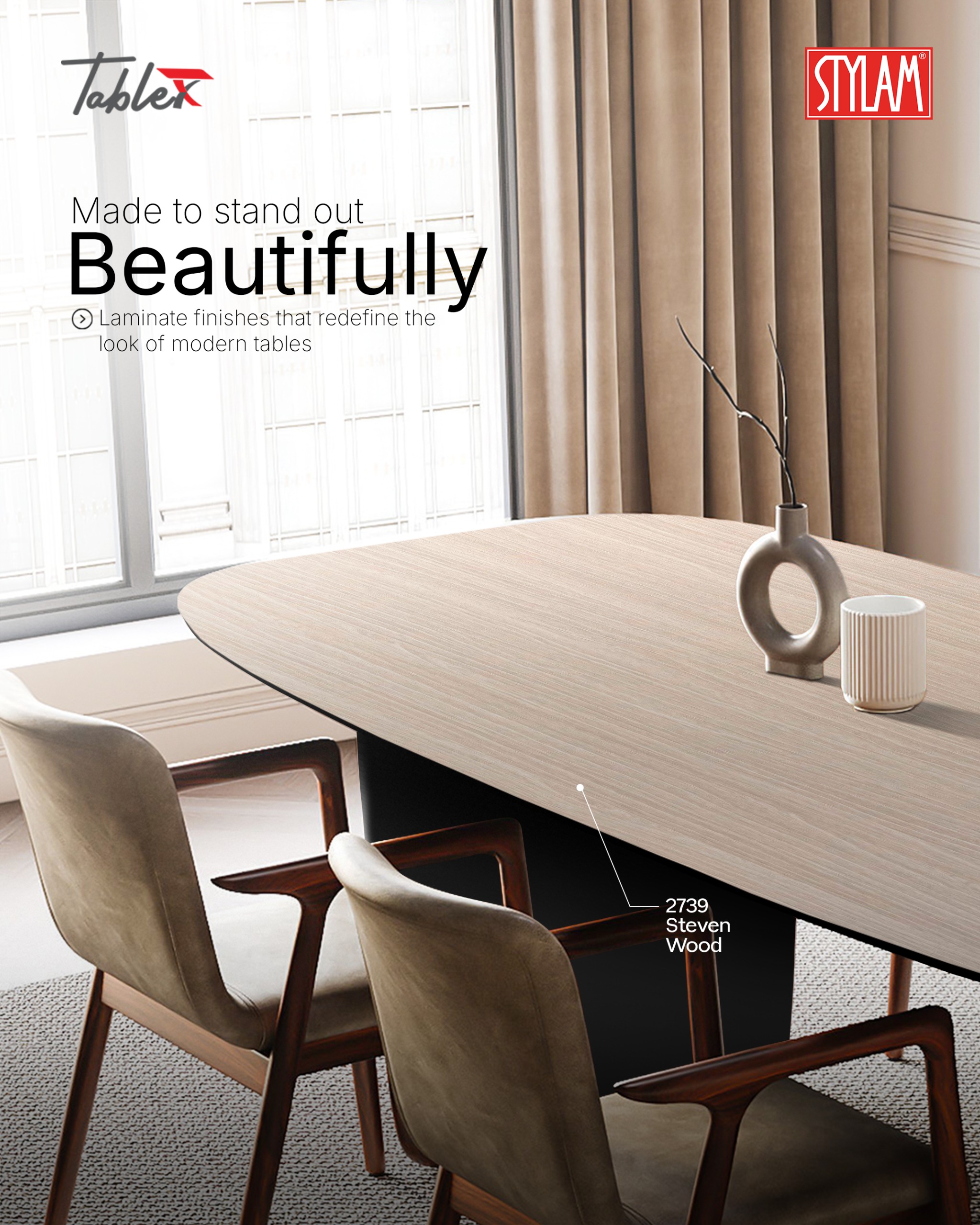 Stylam Laminates @StylamLaminate · 3d Made to stand out. Beautifully. 2739 Steven Wood — redefining modern tables with refined laminate finishes. #Stylam #TableDesign #InteriorSurfaces 21
