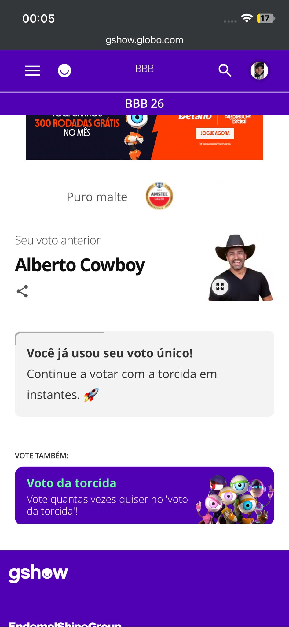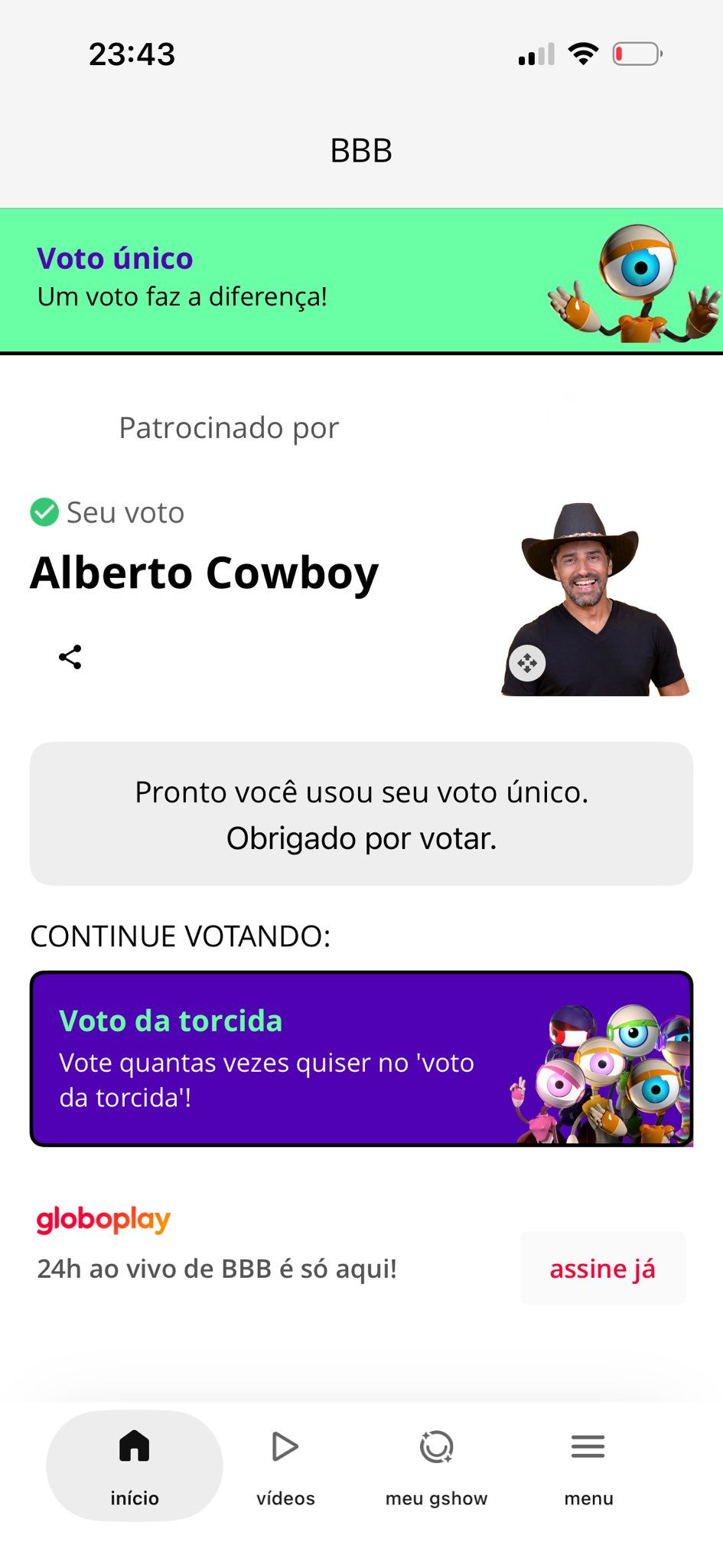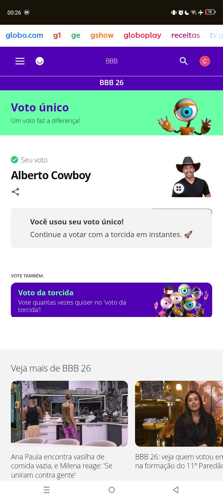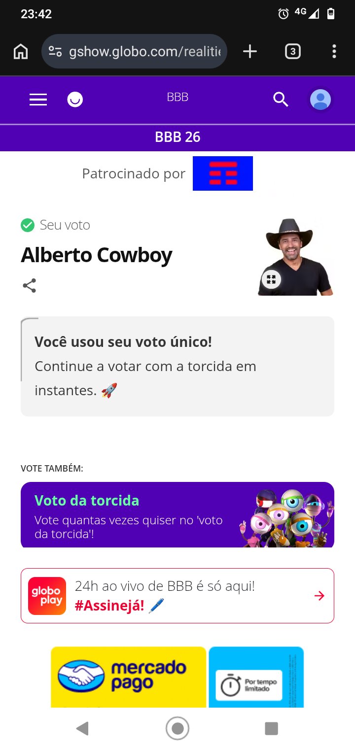 Fabiano Zenon @FabianoZenon · 5h Você já votou no Alberto hoje ? Não ? Então, vai lá no @gshow é rapidinho. #foracowboy #bbb26 #TeamRenautl 1 3 106