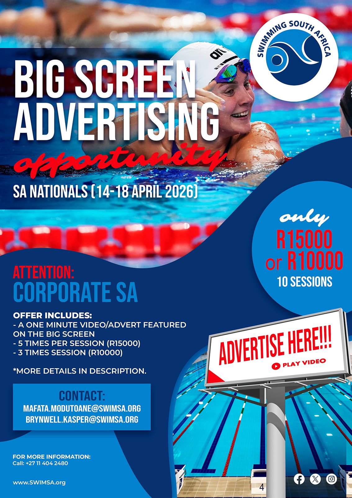 Elevate your corporate brand by aligning with excellence, energy, and a high-performance audience at the Bombela Concession Company SA National Swimming Championships 2026.✨