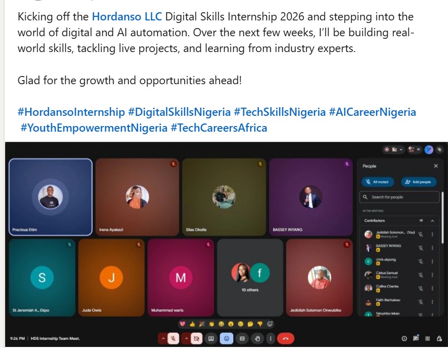 Thrilled to embark on this new journey with @HordansoLtd, a leading tech giant in the country! 🚀 The next few weeks promise fun, learning, and exploration in the tech world. Come along and let's dive in! #TechAdventure #NewChapterz