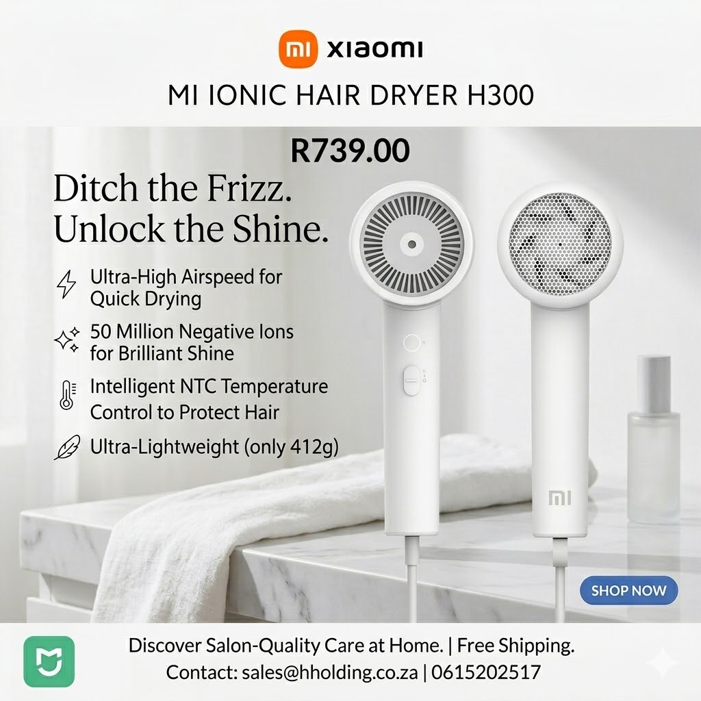 Get the Xiaomi Ionic Hair Dryer H300 for R739.00 and get professional results in minutes. 50 million ions = zero frizz. 💎