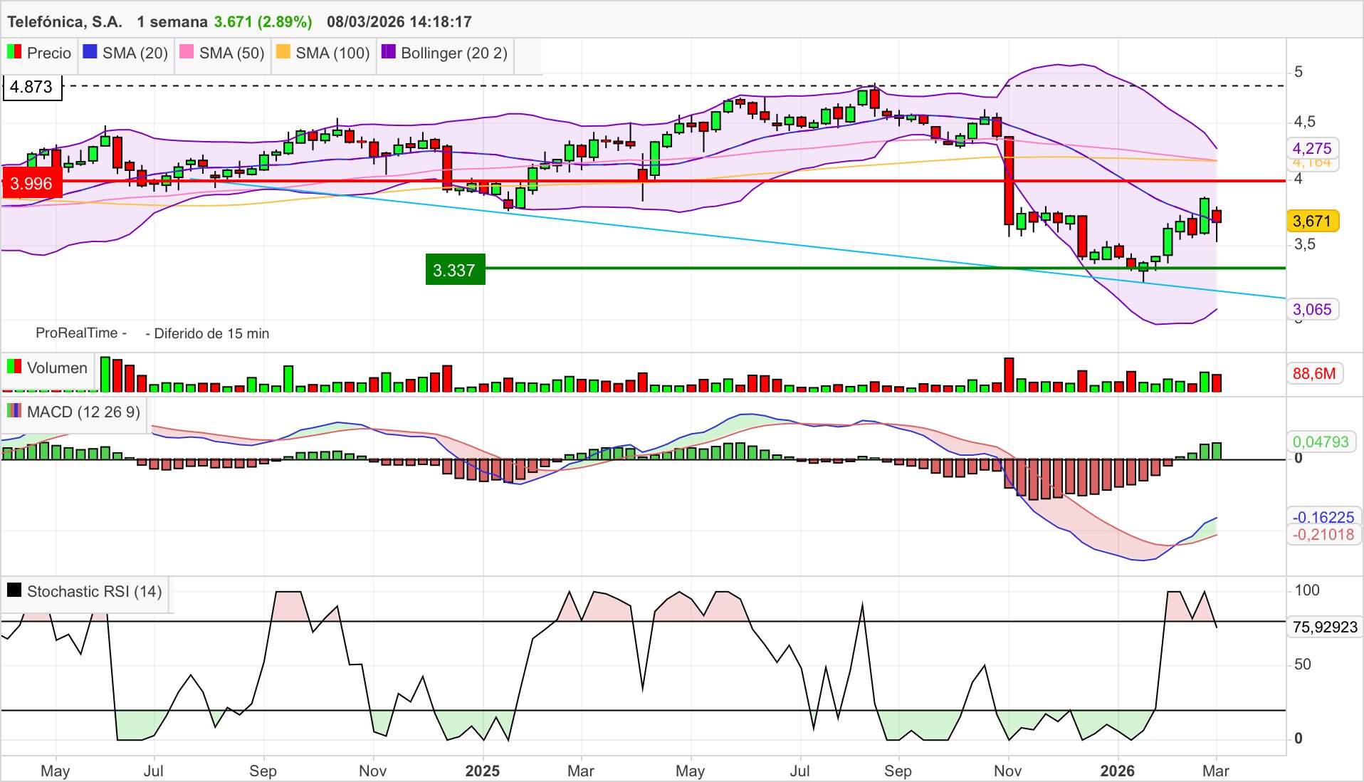 From defensayseguridad.esLa tendencia alcista es verdaderamente tímida y no parece que le ayude el corto plazo. Convendrá operar TELEFONICA con la mayor cautela privilegiando al mismo...