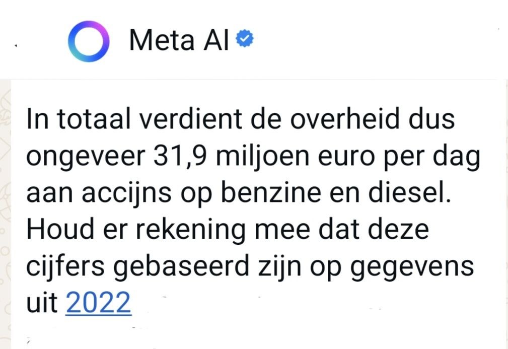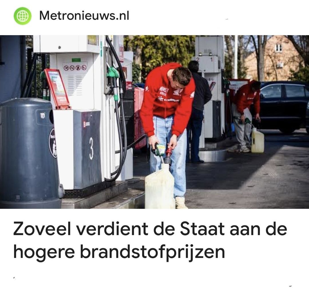 Door de prijsstijgingen levert dat onze overheid op dit moment al meer dan 3 miljoen euro extra op per dag !
