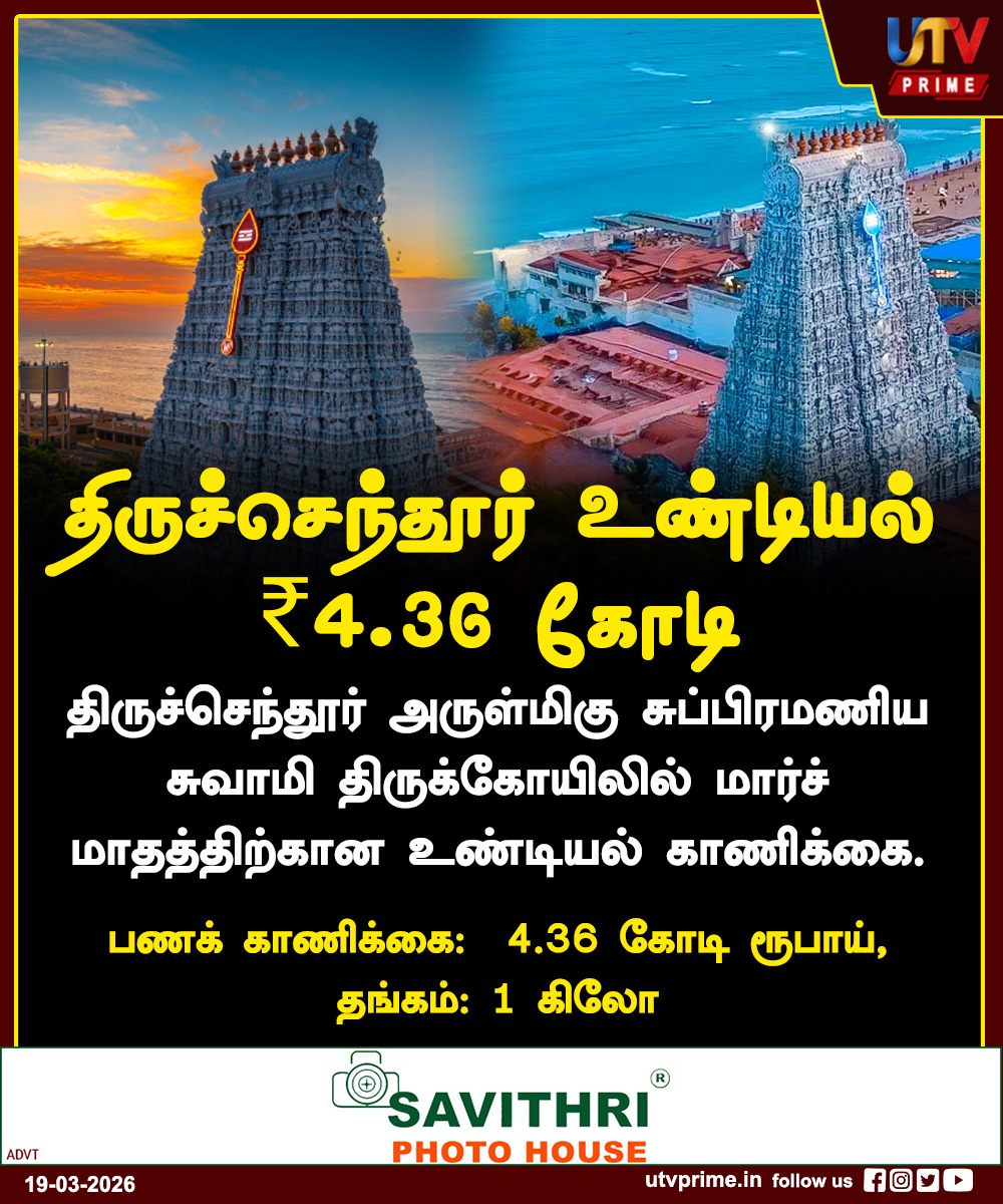 UTV PRIME @utvprime · Mar 19 திருச்செந்தூர் உண்டியல் ₹4.36 கோடி !! #Tiruchendur #TempleCollection #4Crore #TNNews #InstaNews #utvprime 3