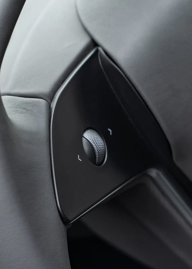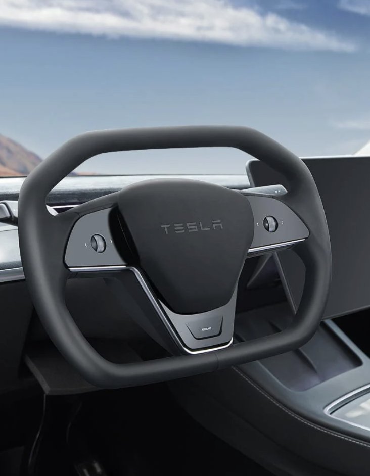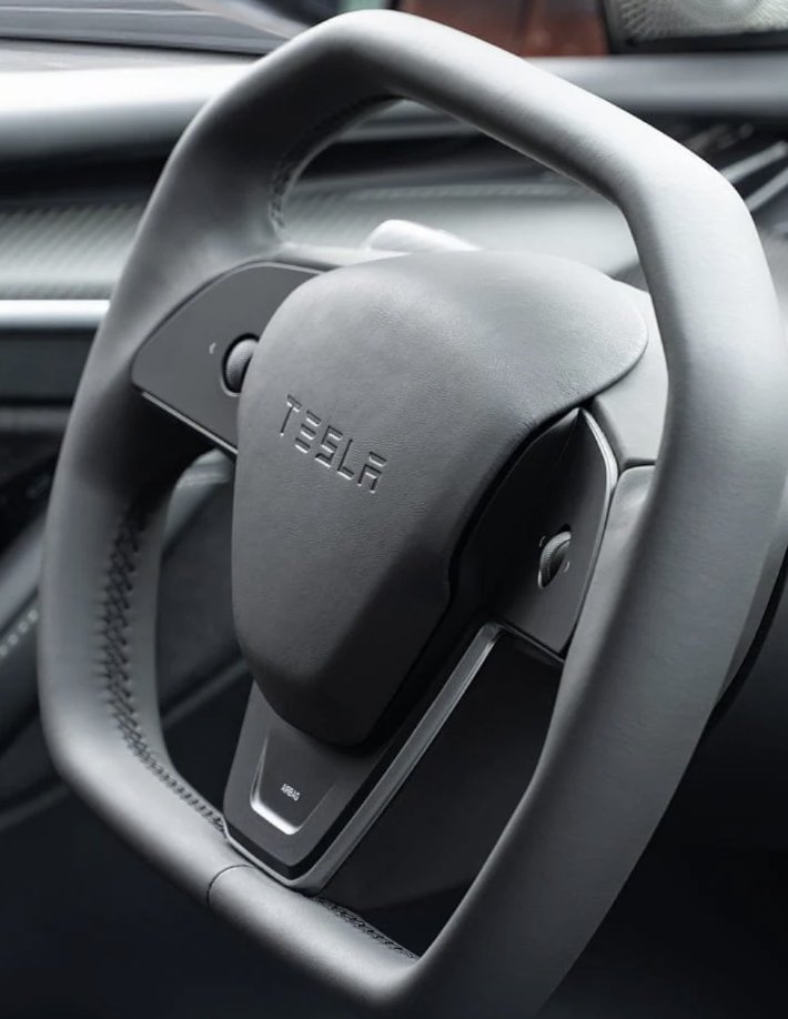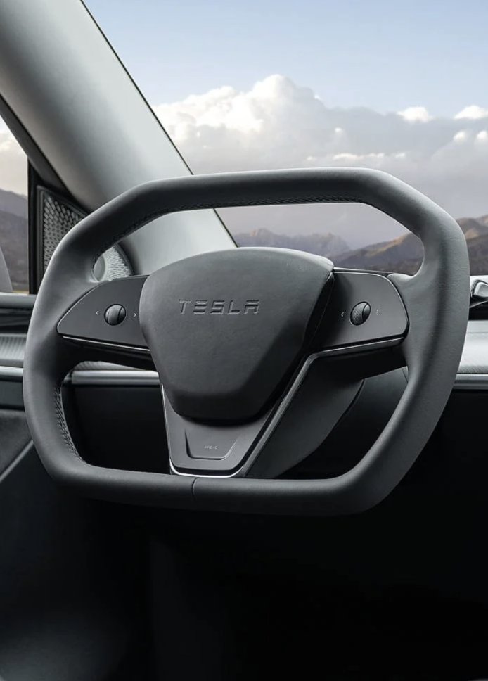 Upgrade to the Cybertruck-Inspired Yoke with a full leather finish and your choice of Black, White, or Alcantara grips.
