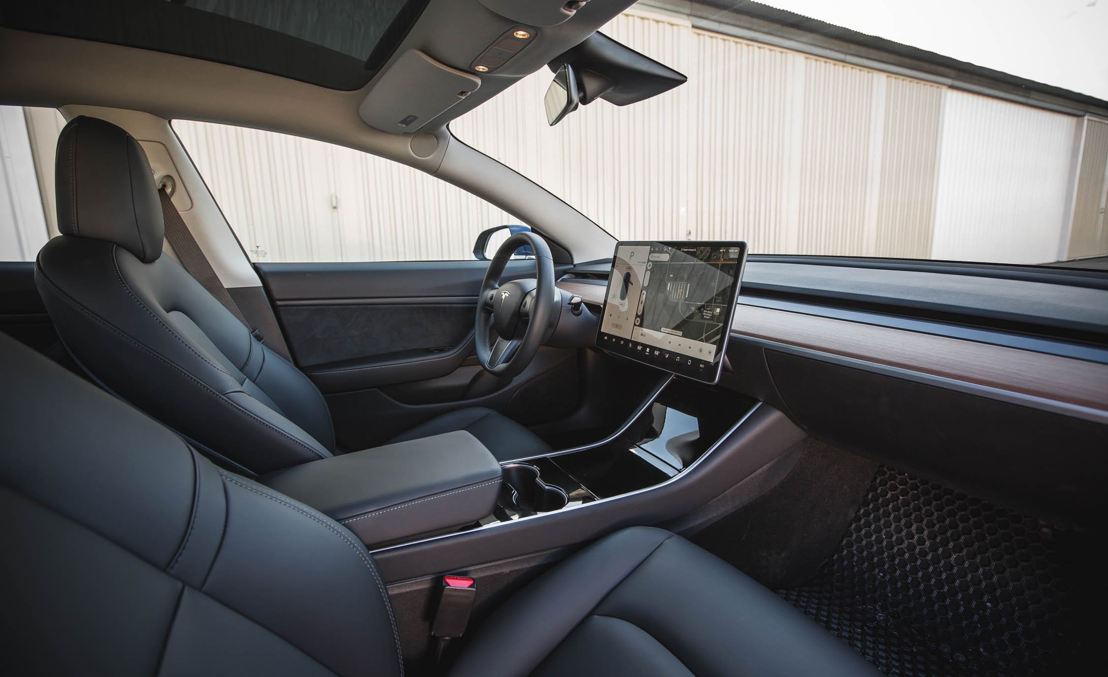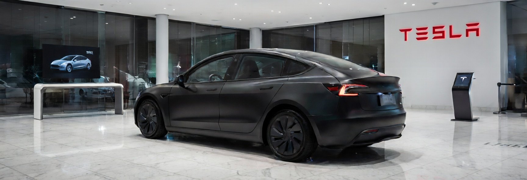 A red Tesla Model 3 with white seats remains the vision