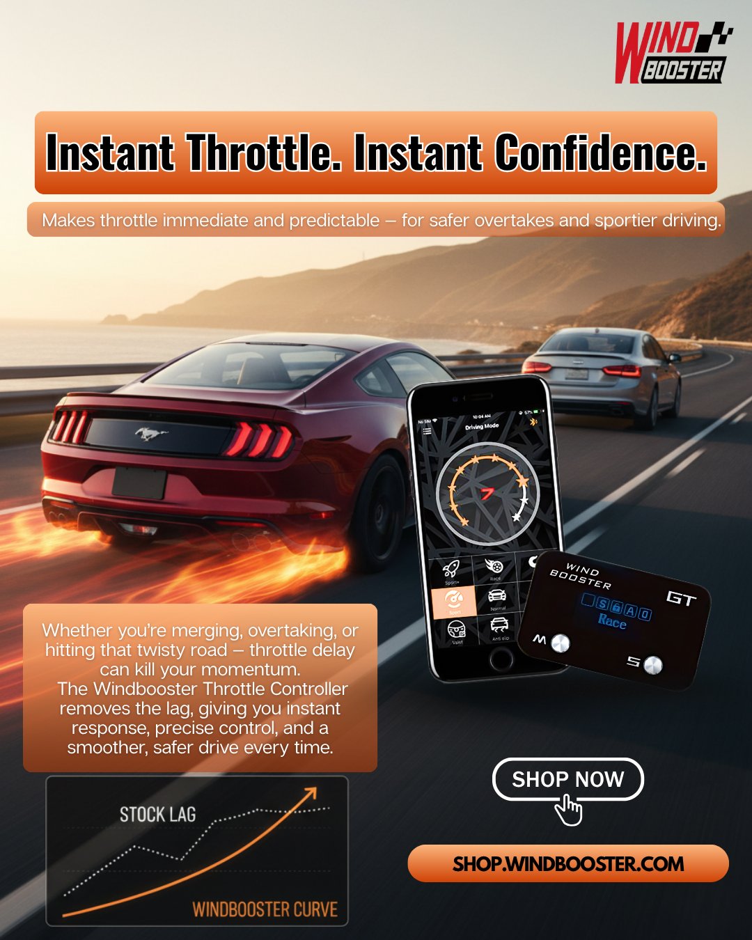 Your car didn’t lose power — throttle delay stole the feel. Windbooster sharpens pedal response instantly.