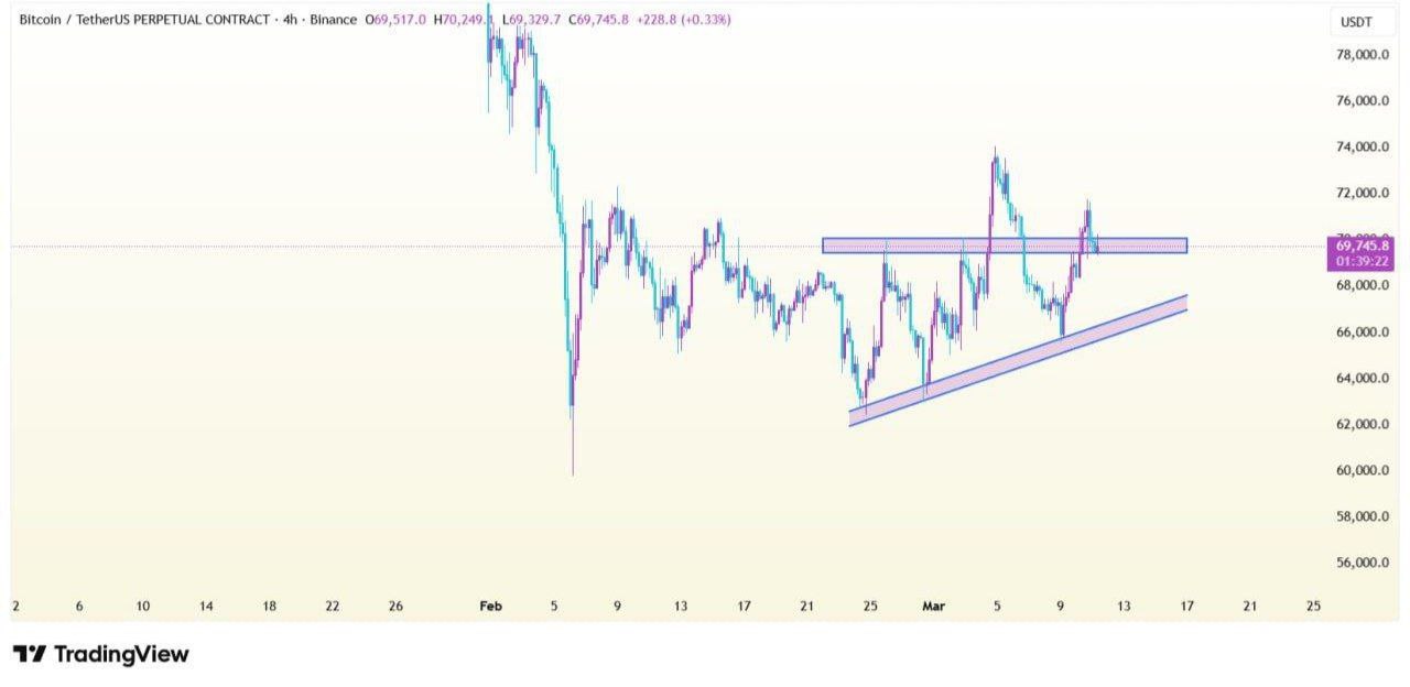 If the retest holds, #BTC may move toward $72k–$74k; if the retest fails, price could revisit $67k–$66k support.📌