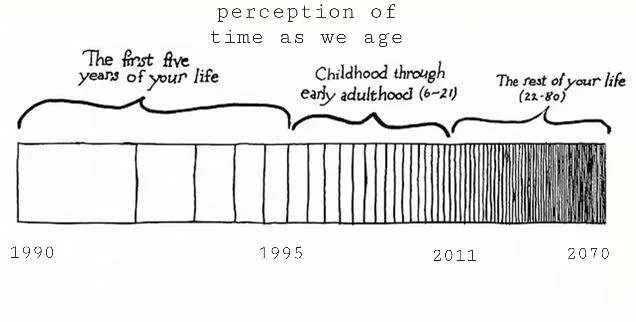 At 5, a year is 20% of life. At 50, it’s 2%. “Janet’s law” says time feels faster as novelty fades. Break it with agency: seek new experiences, create memory dividends, slow the clock. Live on autopilot and 80 can feel like 20.