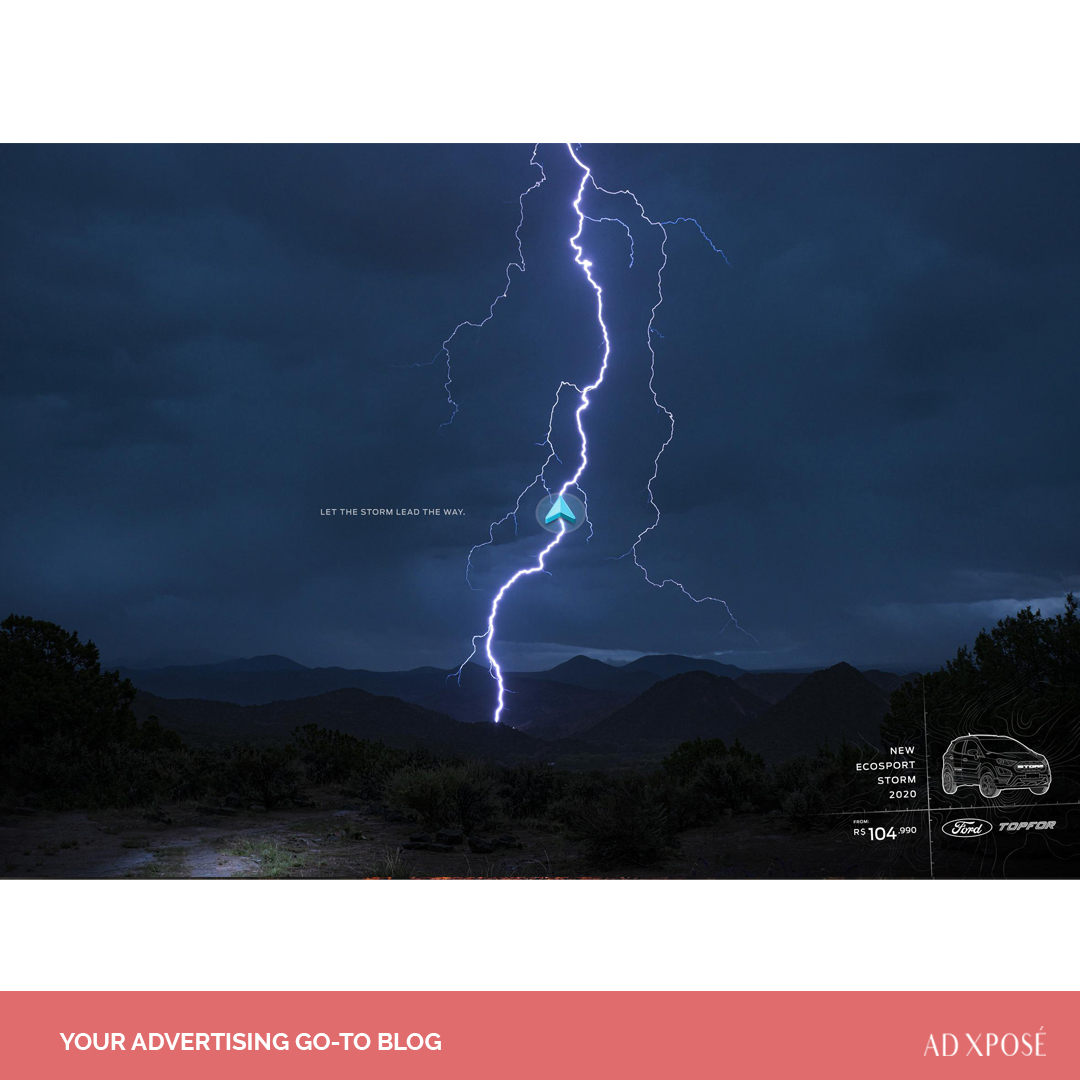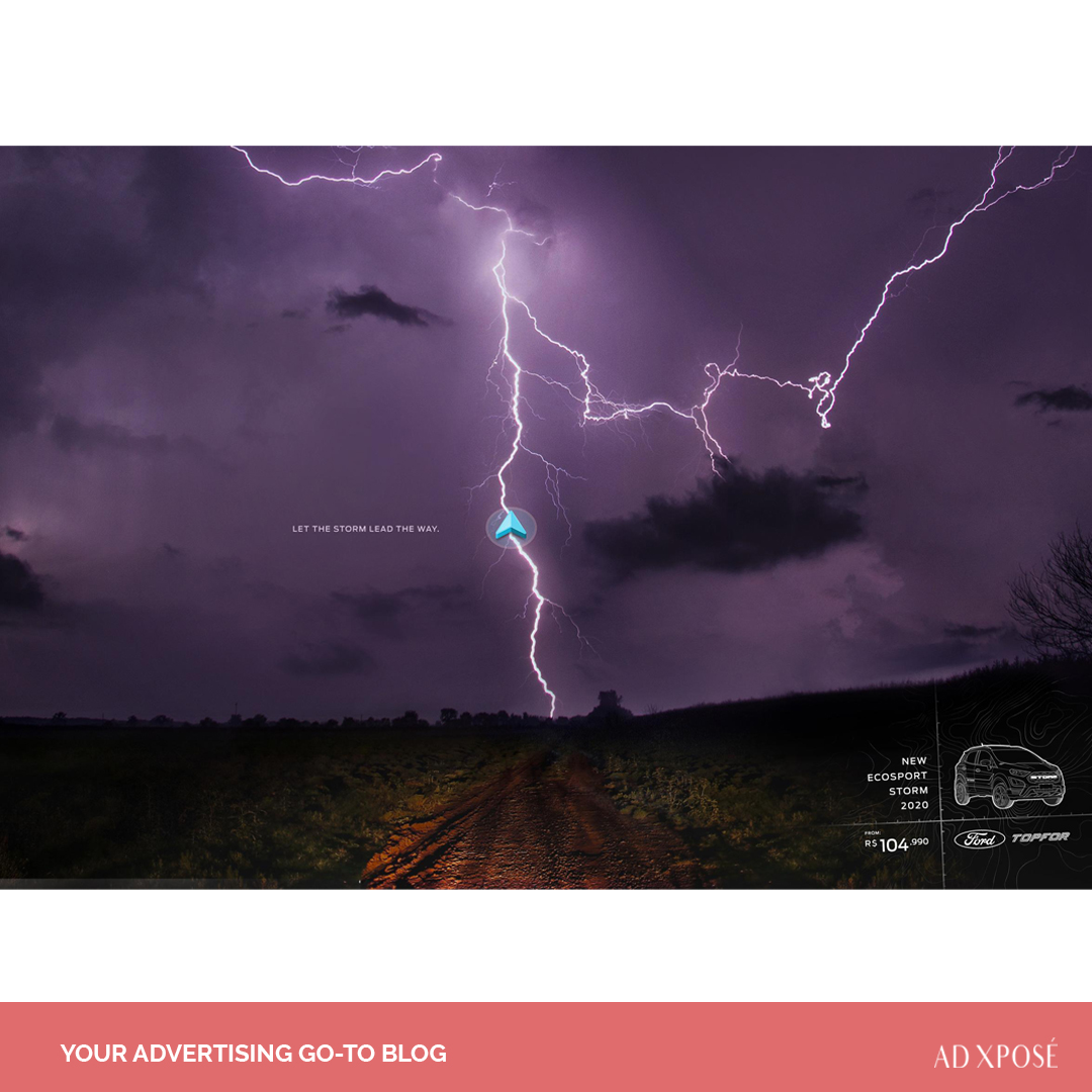 Weather the storm in #Topfor's latest ad for the new #Ford Ecosport Storm - “let the storm lead the way”. The clever wordplay and striking visuals is what we loved about this ad.