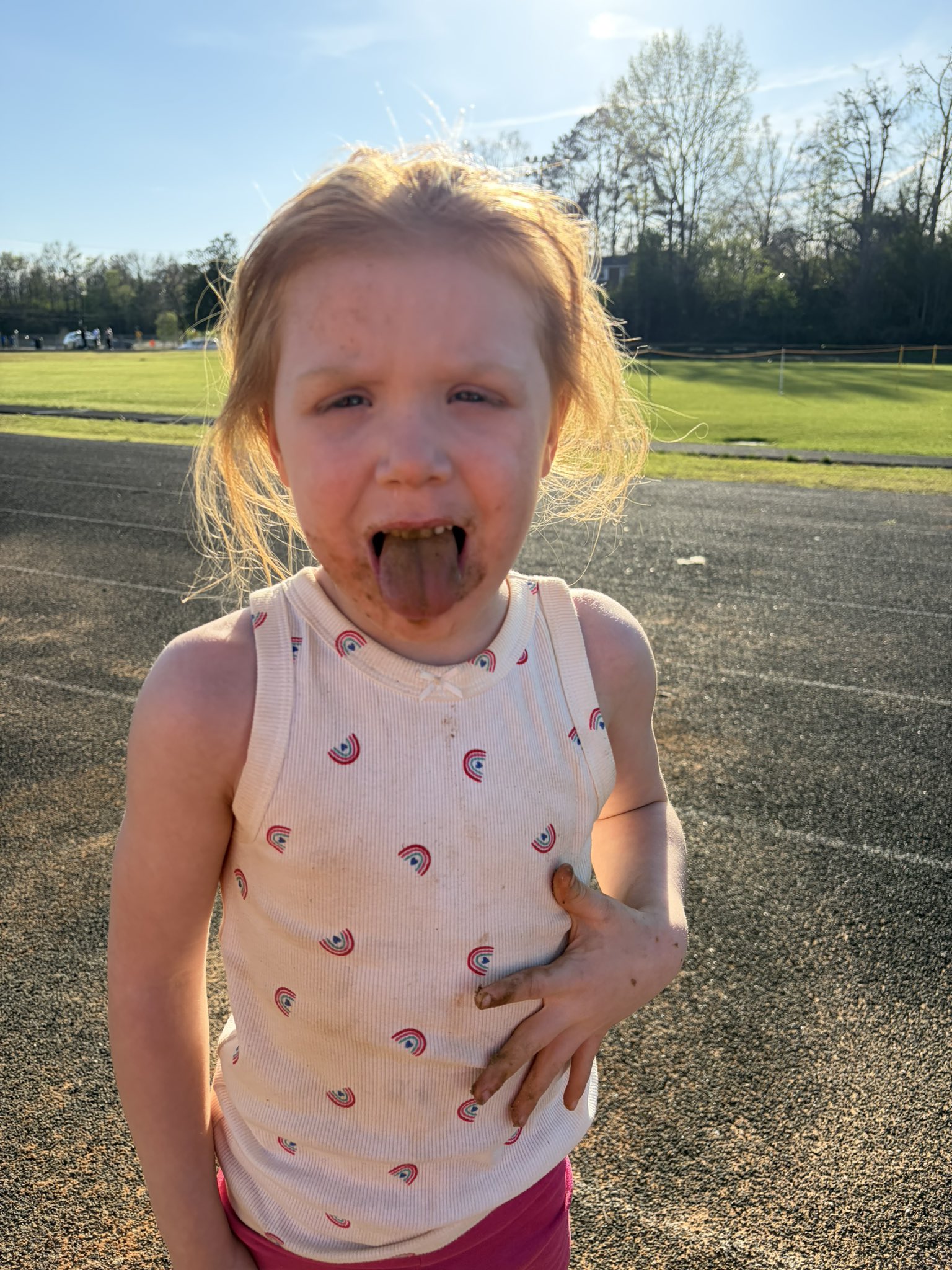 Lil sis out here eating sand like it’s pregame fuel 😭 meanwhile I’m at track practice actually trying to get faster…