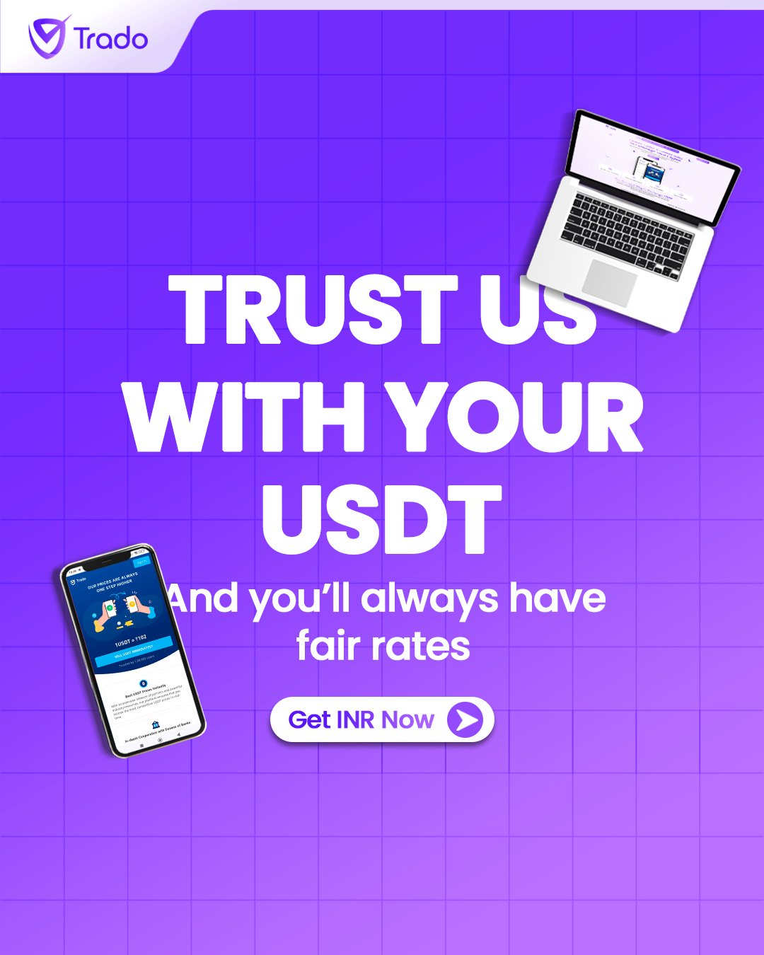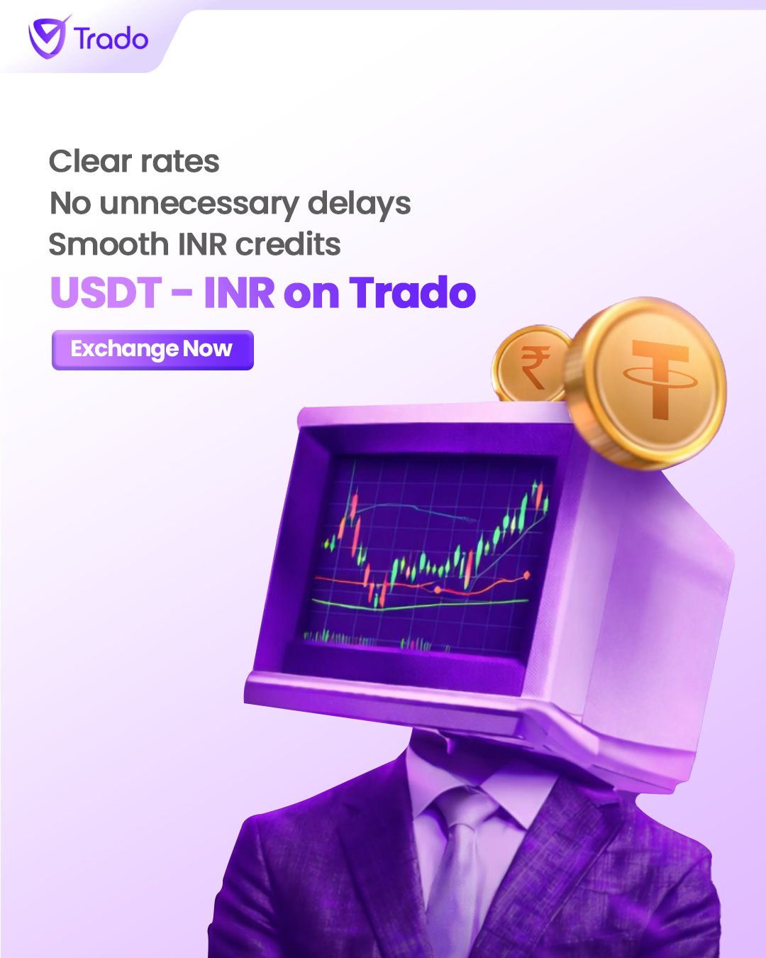 The easiest exchanges are the ones you don’t have to think about. At Trado, we deliver the ultimate USDT-INR exchange experience ever.