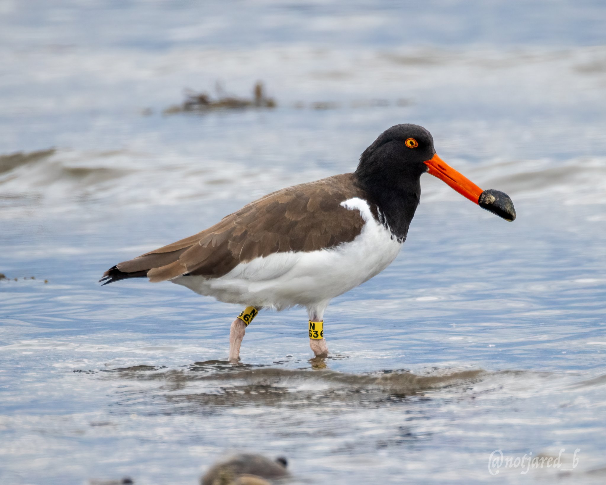 FOY Oystercatchers! My favorite shorebird. A bonus that one of the birds has a new (to me) band. Maybe traveling through, or maybe a new pair settling in here. #ctnaturefans#twitternaturecommunity