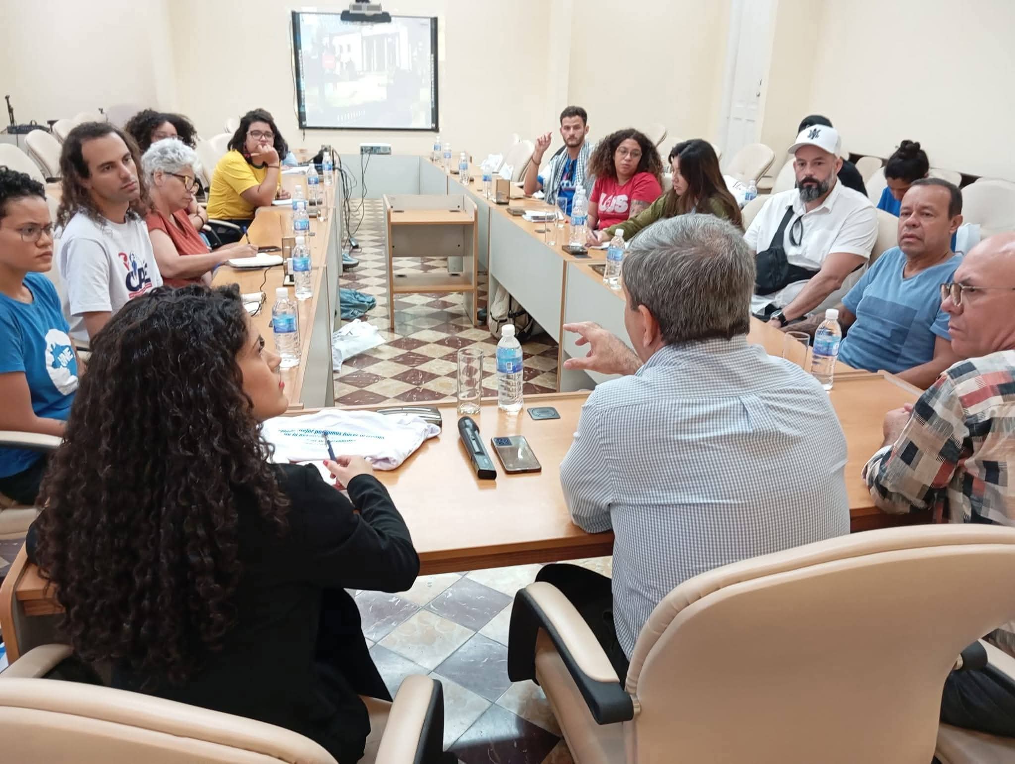 🇨🇺 El ministro Dr.C Walter Baluja García, junto a otros representantes del Ministerio de Educación Superior, y la Federación Estudiantil Universitaria, intercambiaron con integrantes de la delegación que forman parte del Convoy de Solidaridad.