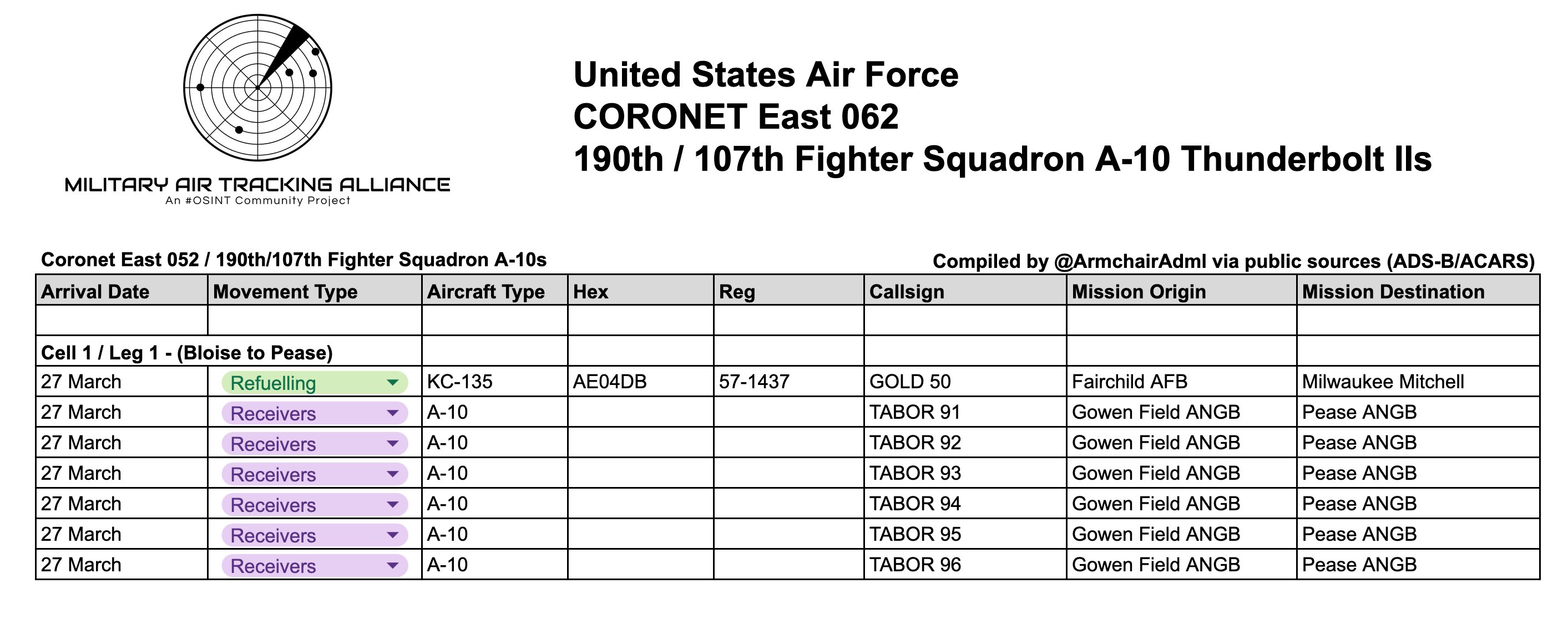 Six Fairchild Republic A-10 Thunderbolt IIs from the 190th Fighter Squadron arrived at Pease Air National Guard Base this evening, Their next stop has been rumoured to be either Lajes or RAF Lakenheath. Their arrival at Pease means we could be looking at A-10s to Lakenheath this weekend.