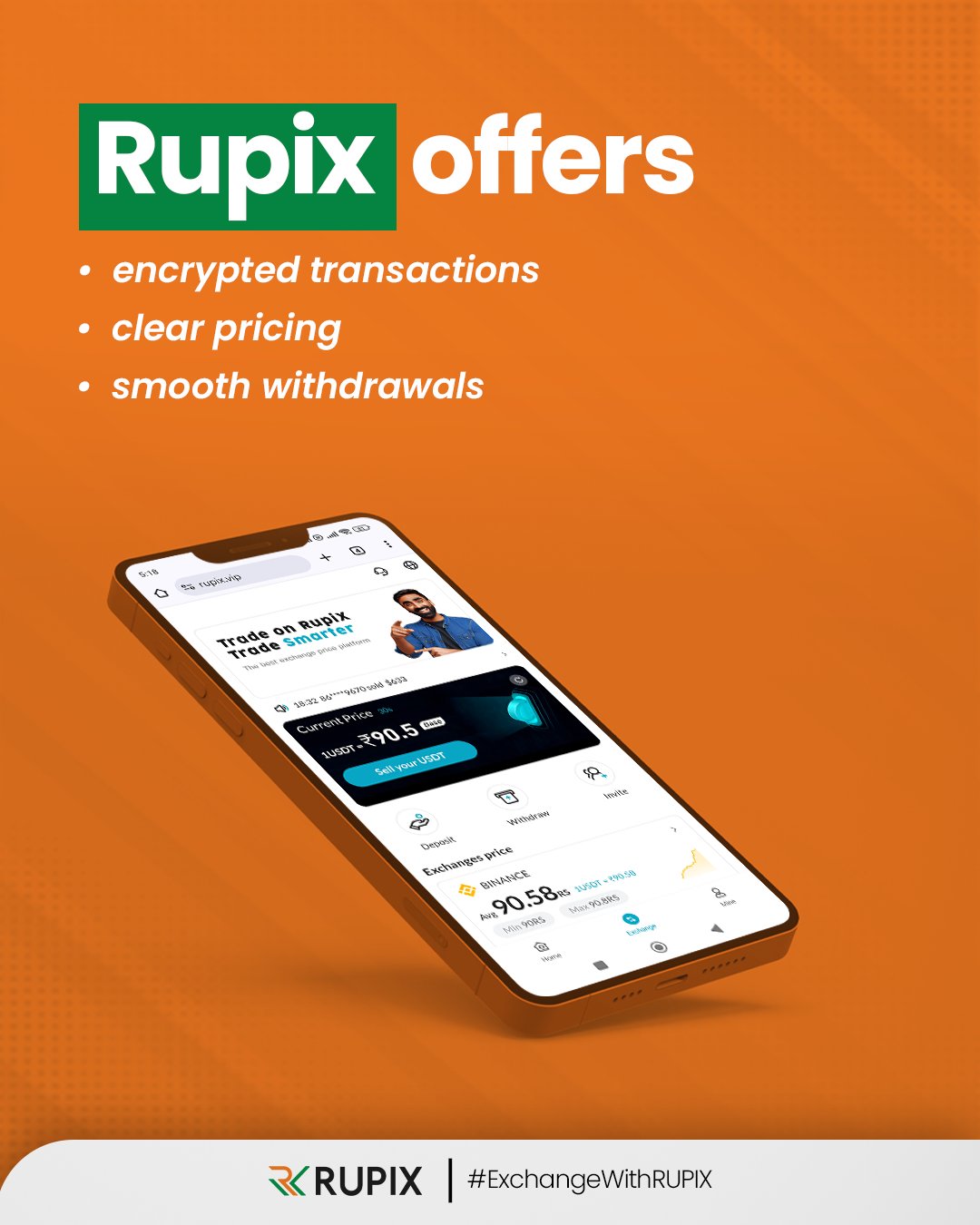 With Rupix, your USDT gets encrypted transactions, clear pricing, and smooth withdrawals.