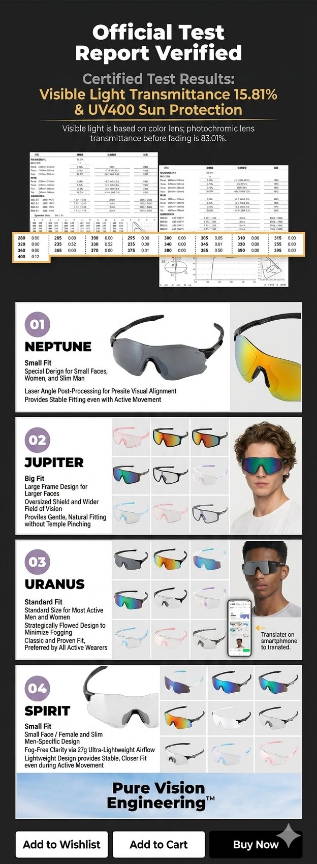 High-performance Photochromic Sports Sunglasses. Seamless transition from bright sun to shade. Perfect for Running, Cycling, Golf & Hiking.#UVProtection #RunningSunglasses
