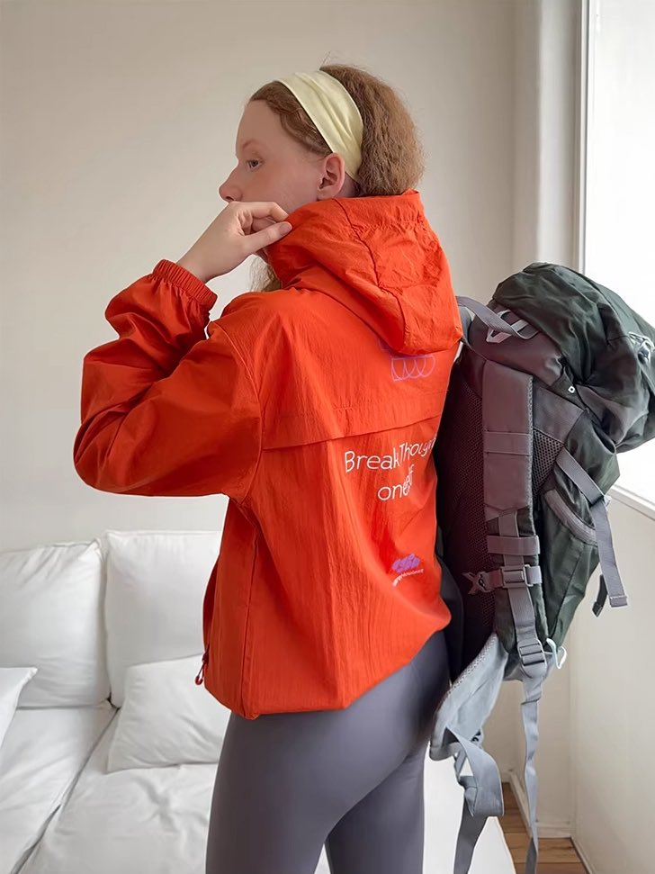 가벼운 나일론 소재의 기능성과 화사한 오렌지 컬러가 만나, 뜨거운 태양 아래서도 정갈하고 쾌적한 아웃핏을 완성해 주는 고기능성 아웃도어 자켓.