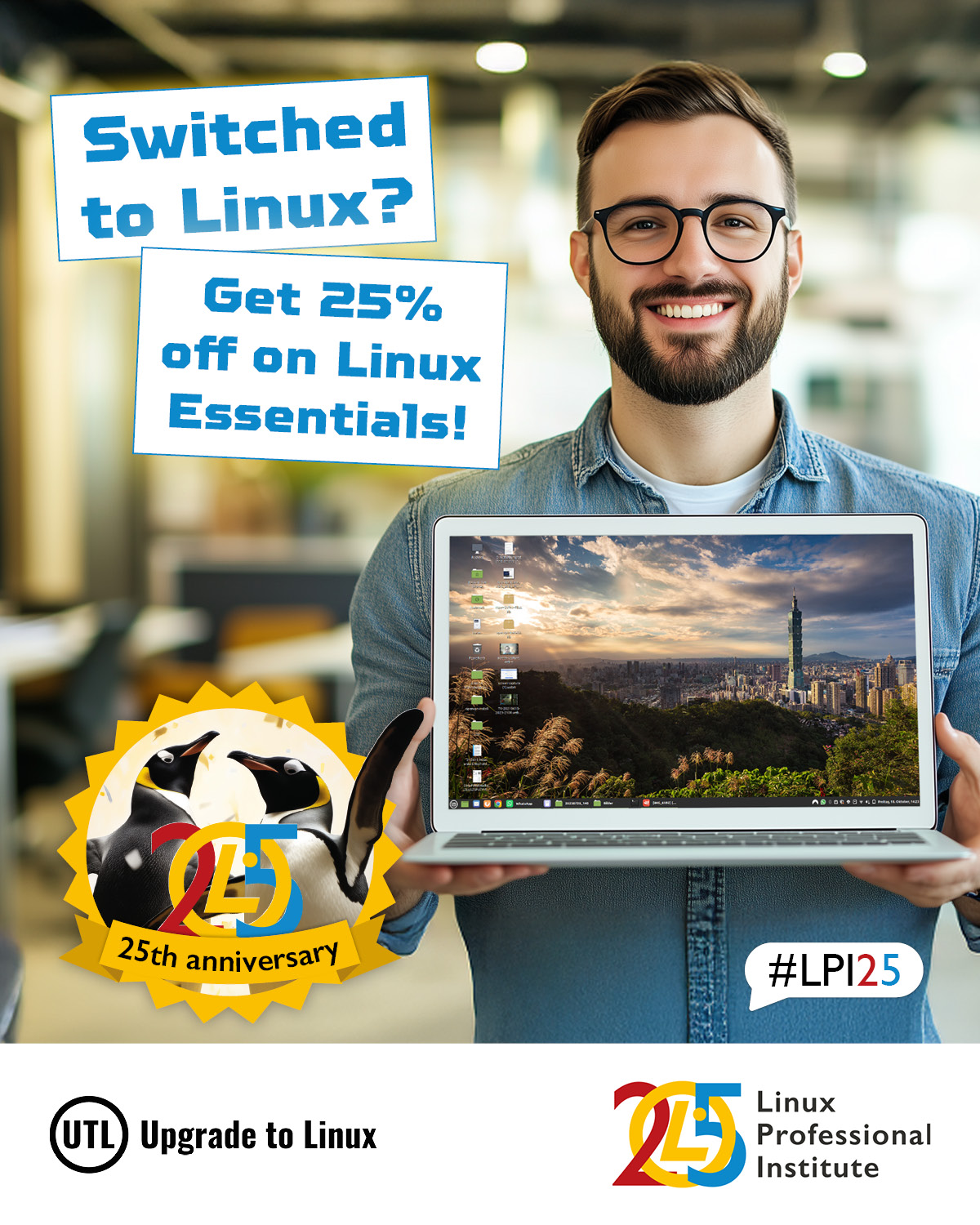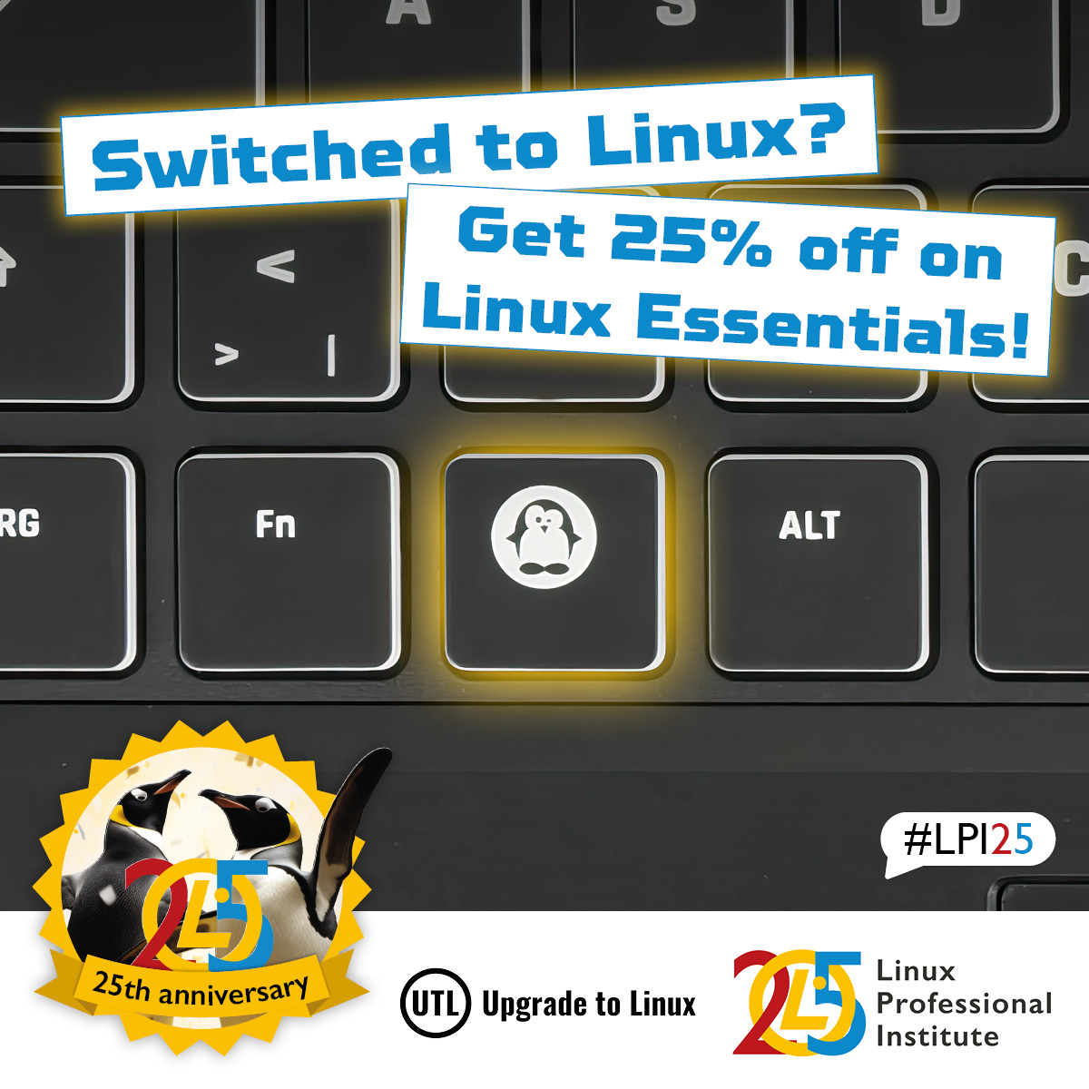 Linux Professional Institute Africa @LpiAfrica · Sep 19, 2025 Ready to launch your #IT career? #UpgradetoLinux and share a photo of your new #Linux setup with the hashtags #LPI25 and #switchtolinux to receive a 25% discount voucher for an #LPI #LinuxEssentials exam! 💪🐧🌍 View more 25th anniversary detaillpi.org/pho9Kaov 14