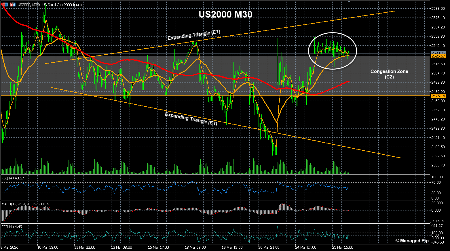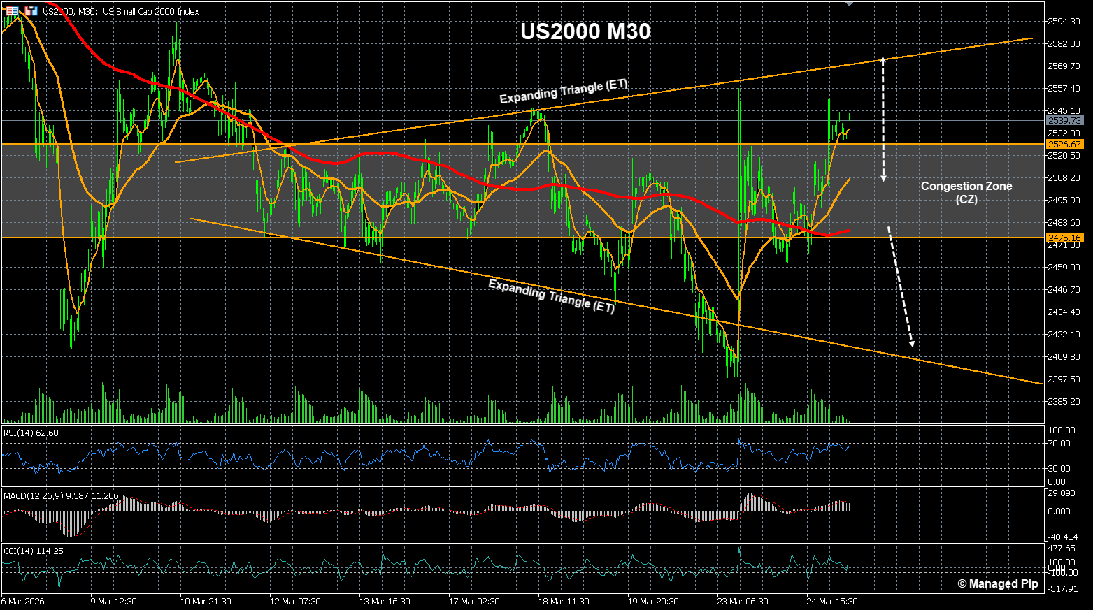 Mevcut yapı itibariyle fiyat direnç bölgesine oldukça yakın ve sıkışma daralmış durumda. Bu tarz yapılarda kırılımın sert gelme ihtimali yüksektir. 2.560 üzeri kapanışlarda yukarı yönlü hareket hız kazanabilir.