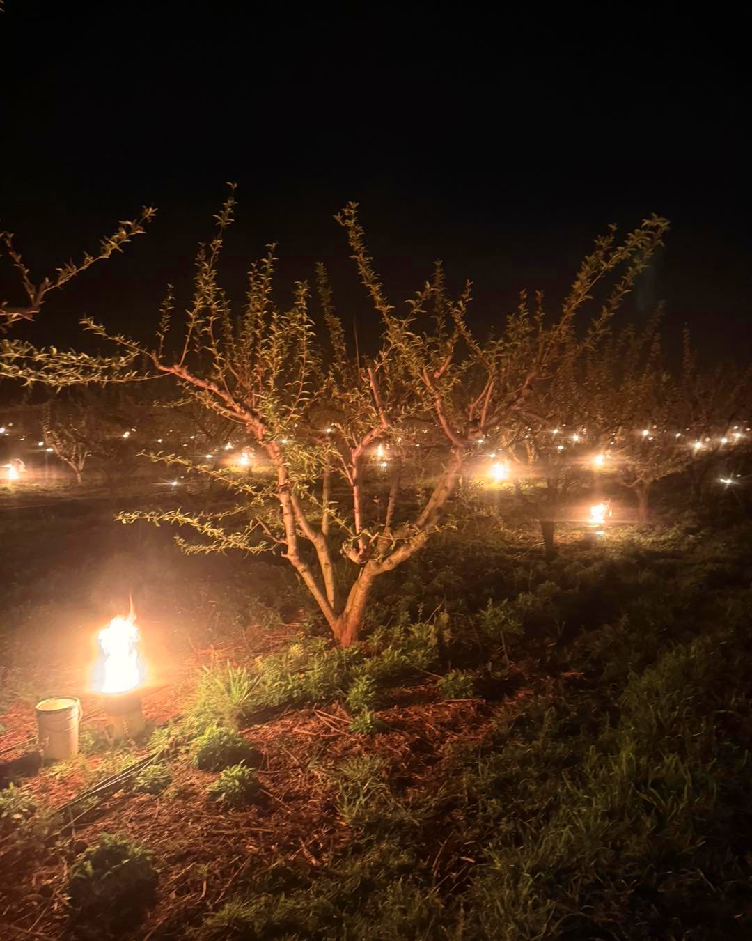 Des bougies ont de nouveau été allumées la nuit dernière dans certaines cultures françaises en raison des #gelées, cette fois-ci plus au sud comme sur cette photo à Taradeau dans le #Var.