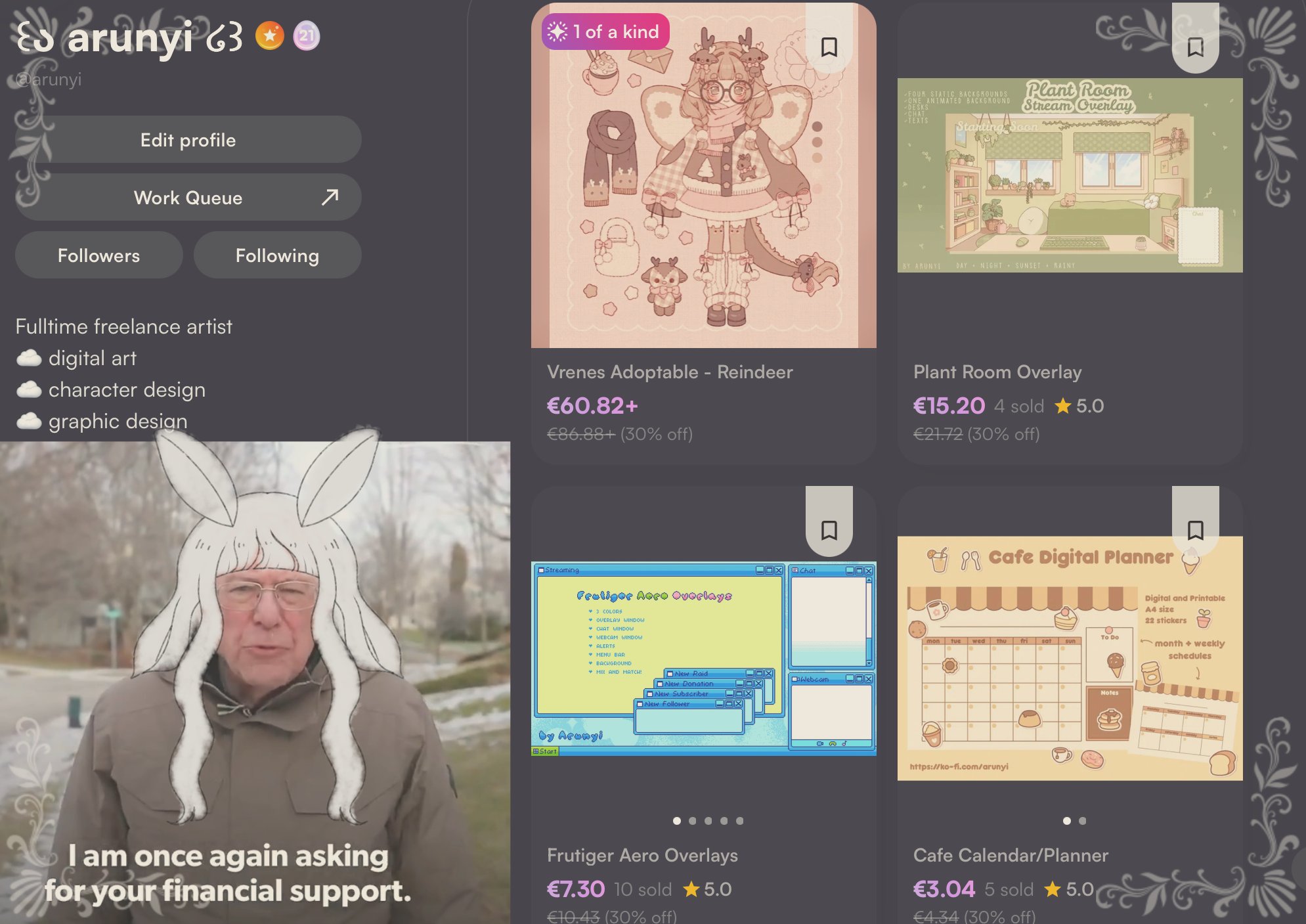 I'm taking as many comms as I can right now so I'm doing discounts on my shop this week!