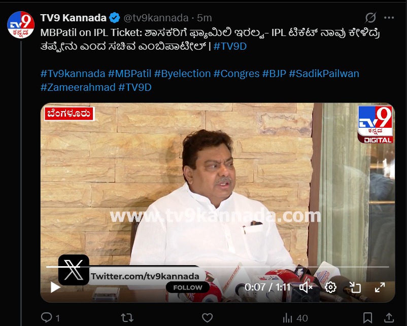 Karnataka Minister MB Patil defends the demand for IPL tickets, asking, Dont MLAs have families?” and What is wrong in asking for IPL tickets?