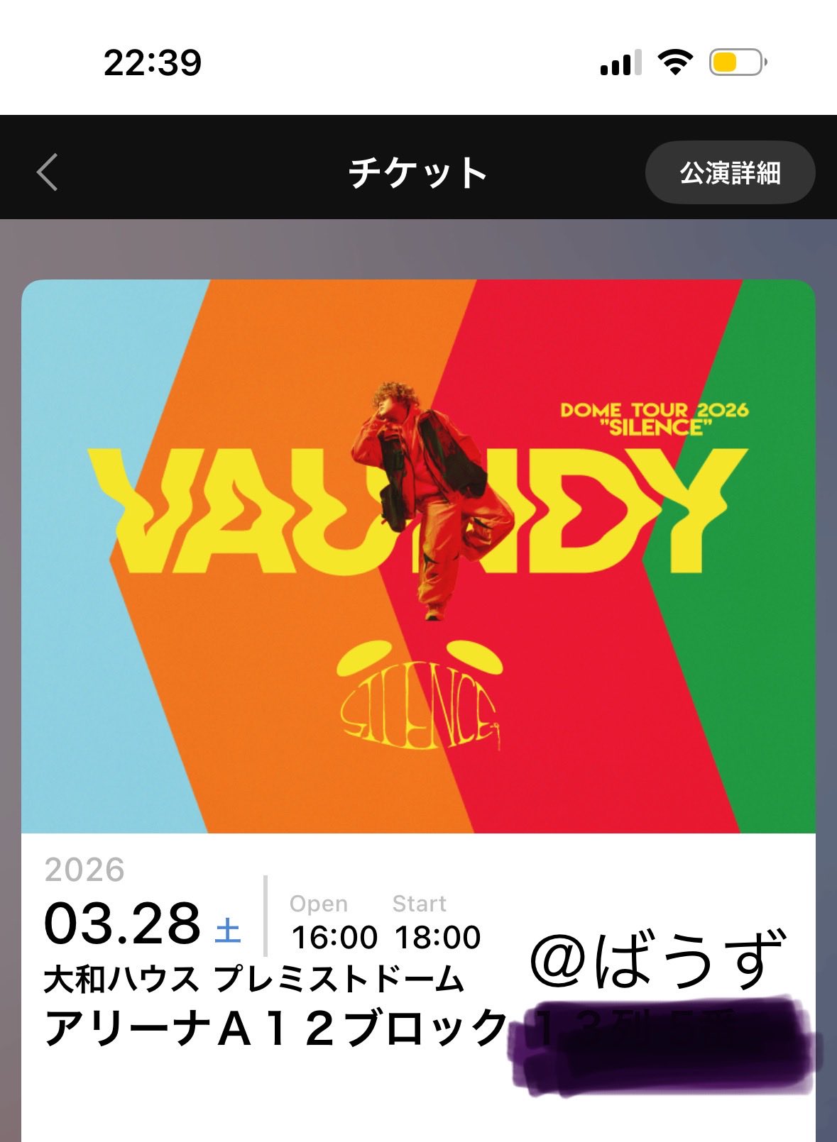 ばうず @wxzj50910 · 5d 誰かVaundyドームツアー、 3/28(土)北海道プレミストドームに行ける方いないですか、🥲 お互い不安のないよう相談しながらやりとりさせてください! アプグレありです🎟💭DMください! #Vaundy #Vaundyドームツアー #Vaundyチケット譲 #VaundyチケXDB 1 1 3 855