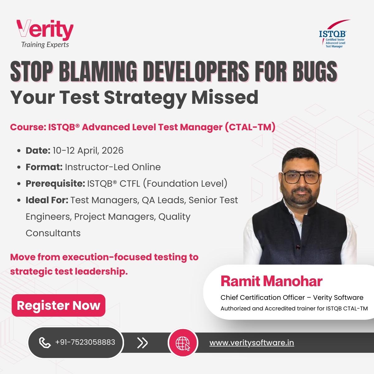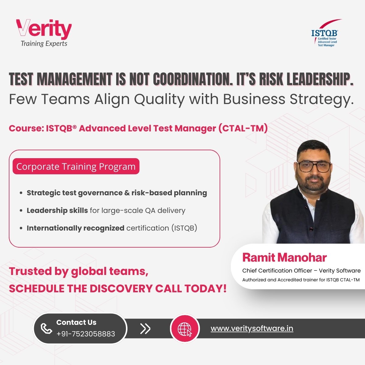 Elevate your QA function with @ISTQBORG Advanced Level Test Manager (CTAL-TM) Corporate Training.