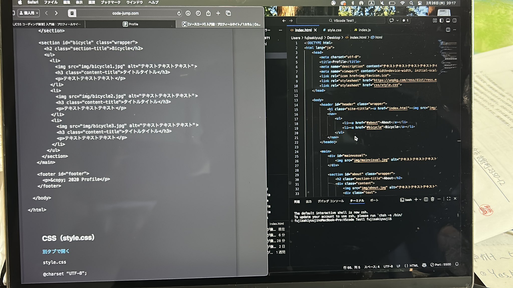 Safariから練習用ソースコードを探して模写して居ます。