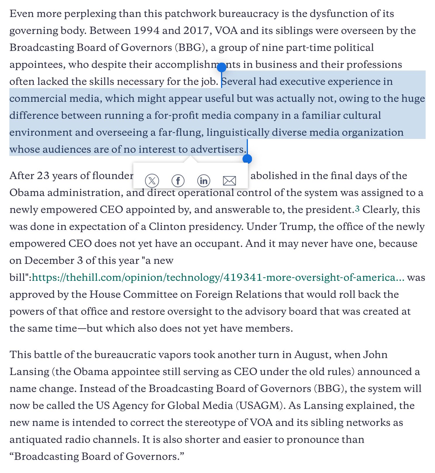 From washingtonpost.comThe appointment raised concerns that the Trump administration would try to erode the news group’s independence after picking a deputy who had been at conservative news channels for around 20 years.