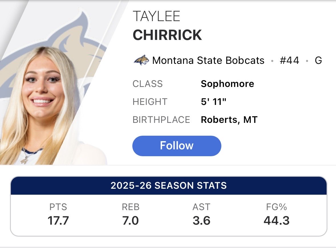 5-11 So. Taylee Chirrick 17.7 ppg & 7.0 rp@g @MSUBobcatsWBB & 6-4 Sr. Izabella Zingaro 17.3 ppg 7.5 rp@g @CSU_WBasketbal@l @espn 📺 #WN@IT @ESPN_WomenHo@op @MarchMadnessWydL