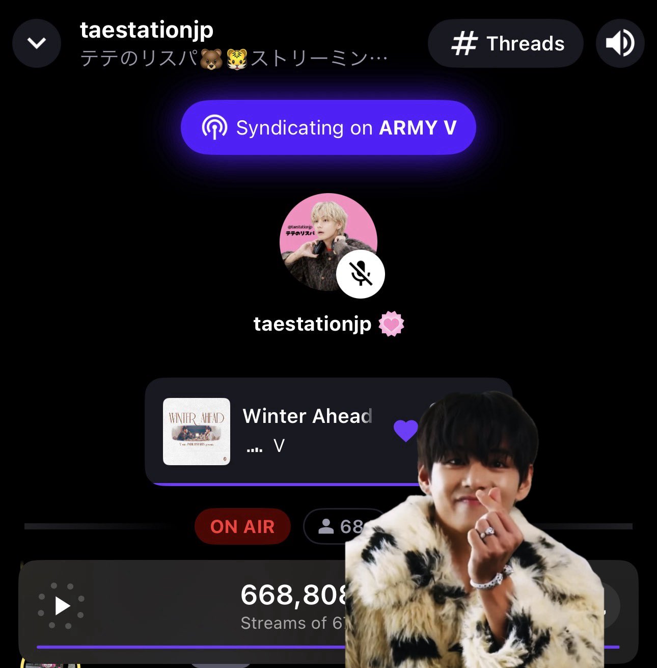 ひみちゃん🍓🍓·̩͙❅*☃︎𝕨𝕚𝕟𝕥𝕖𝕣 𝕒𝕙𝕖𝕒𝕕☃︎*❅·̩͙ @himichan_thv · Jan 30 Replying to @BTSV_JPN @BTSV_JPN 🐯テテタイム🐻 息をのむ程素敵な姿をたくさん見せてくれたテヒョンさんが、メンバーと過ごし愛らしく微笑むその瞳に、懐かしさと共にキュンとしましたね💜 21時からの #テテのリスパ で私たちの愛をお届け💌 メンバーと穏やかに過ごしているテテを見れて幸せです🤗💕 #WeLoveYouTa3vzkqf 12 82