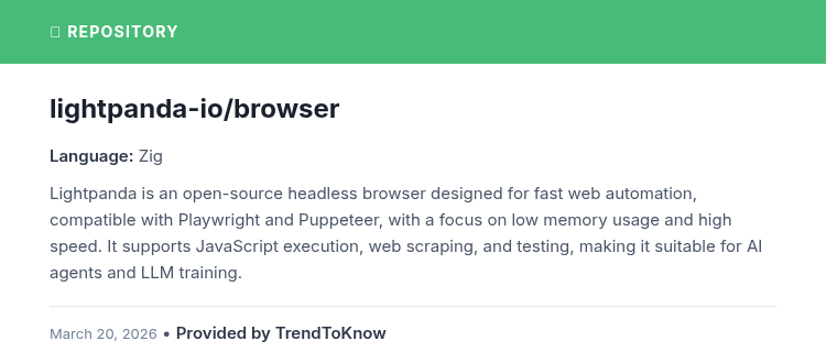 TrendToKnow AI: lightpanda-io/browser