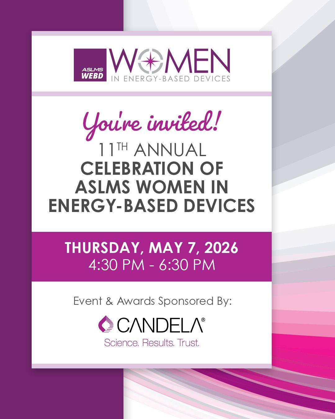 Join us for the 11th Annual Celebration of ASLMS Women in Energy-Based Devices to enjoy networking and inspiration. Learn more and register for the conference at aslms.org/annual-confere…