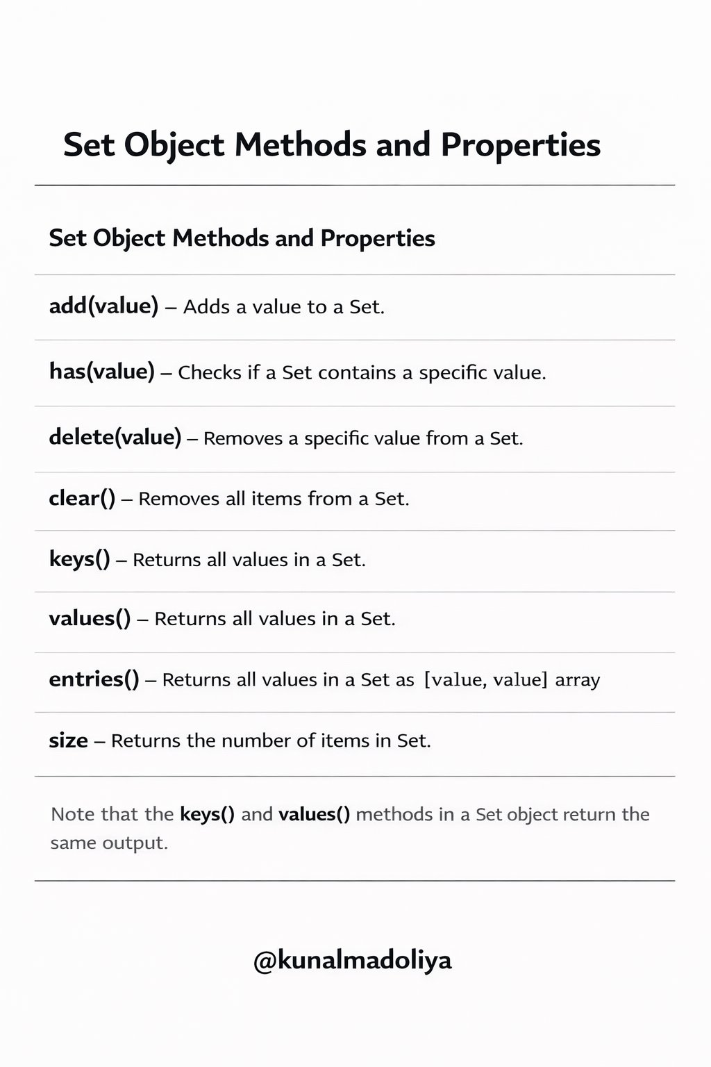 Some important methods and properties of Set 👇