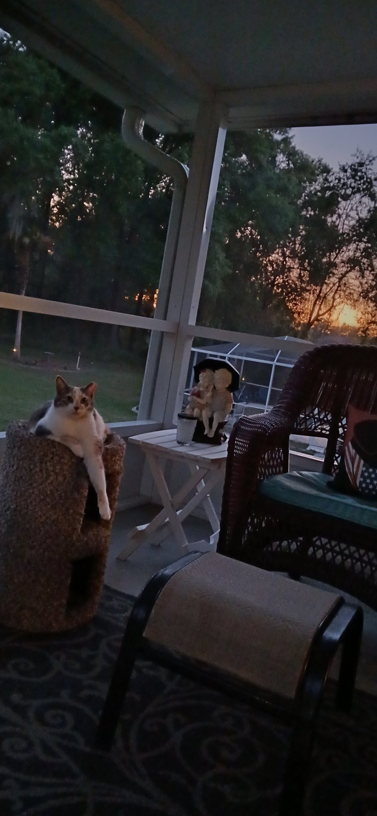 Happy #weekend pals!😻🐾💕 sitting out with mom last night. She loves to watch the sunset. My #catdad is having a difficult time with his cancer treatments. If can, please say a prayer for him🙏. #catsarefamily #hedgewatch #catsAvbs
