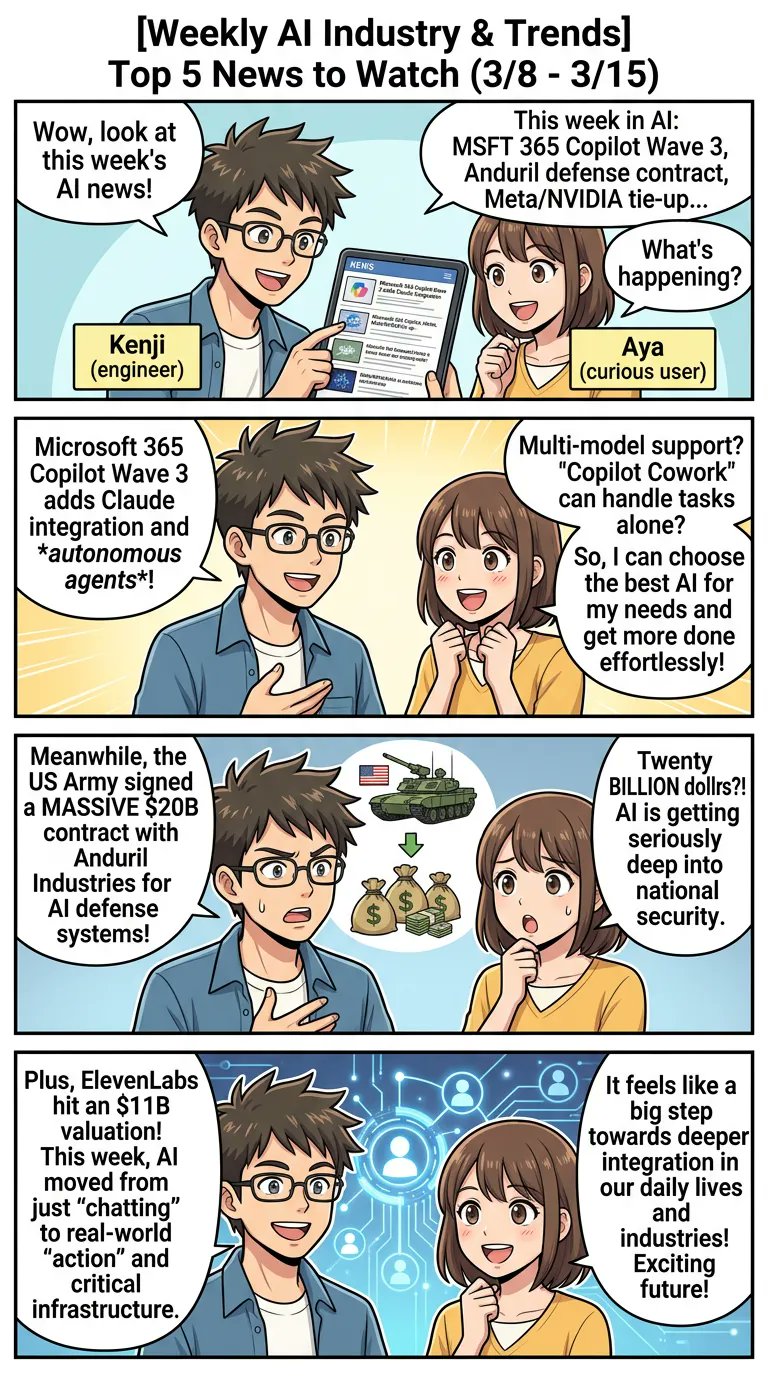 4コマAIニュース @4koma_ai_news · Mar 15 AI agents, defense contracts, and massive infrastructure scaling—it’s been a huge week! 🚀 Here are the top 5 AI stories to watch. #AI #WeeklX 1 4