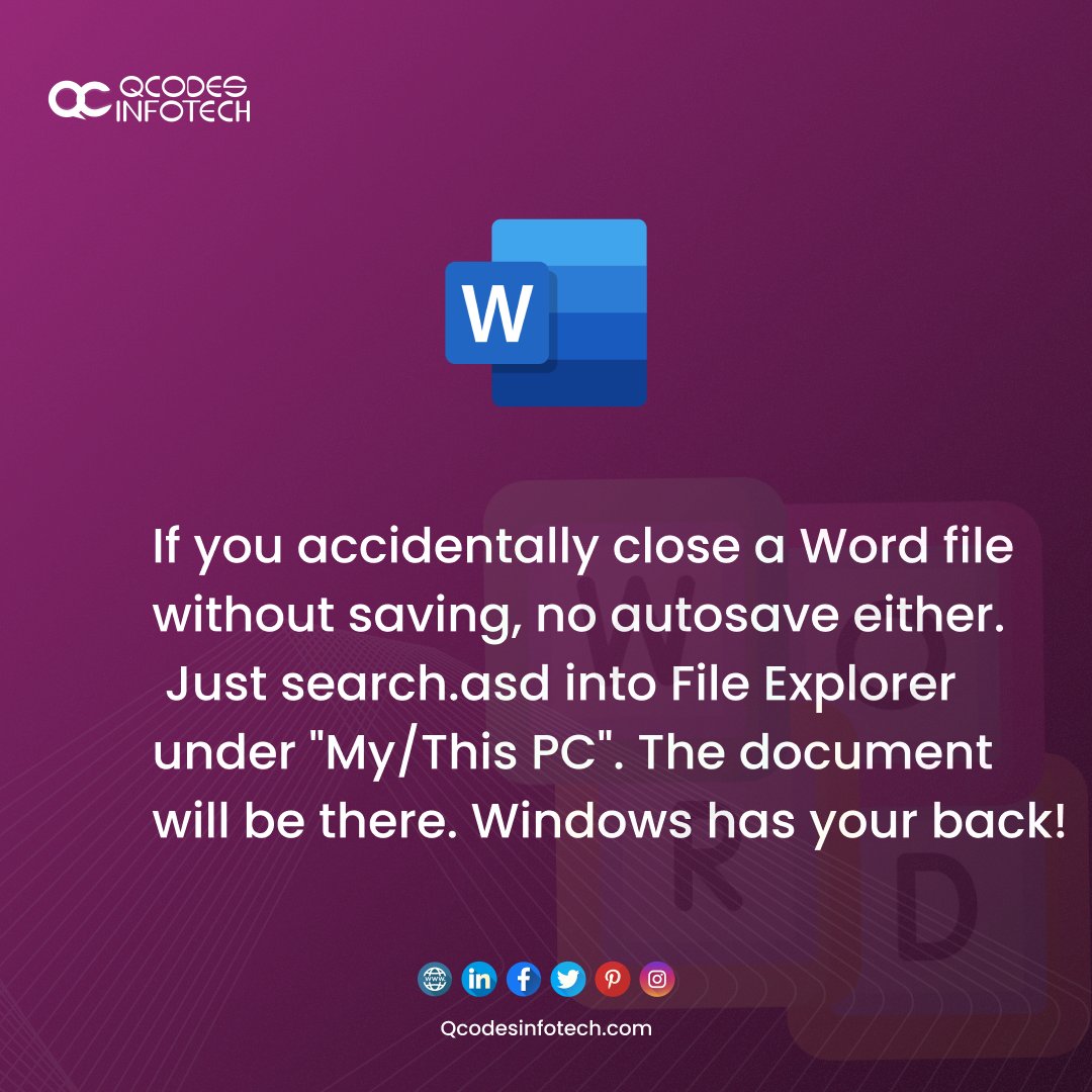 Lost a Word file you forgot to save? Search .asd in File Explorer to find it. Your work is still there! #WindowsTip#ProductivityHack#TechSupport