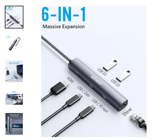 "Fast ethernet, 4K display, and 65W charging—all in one hub!"