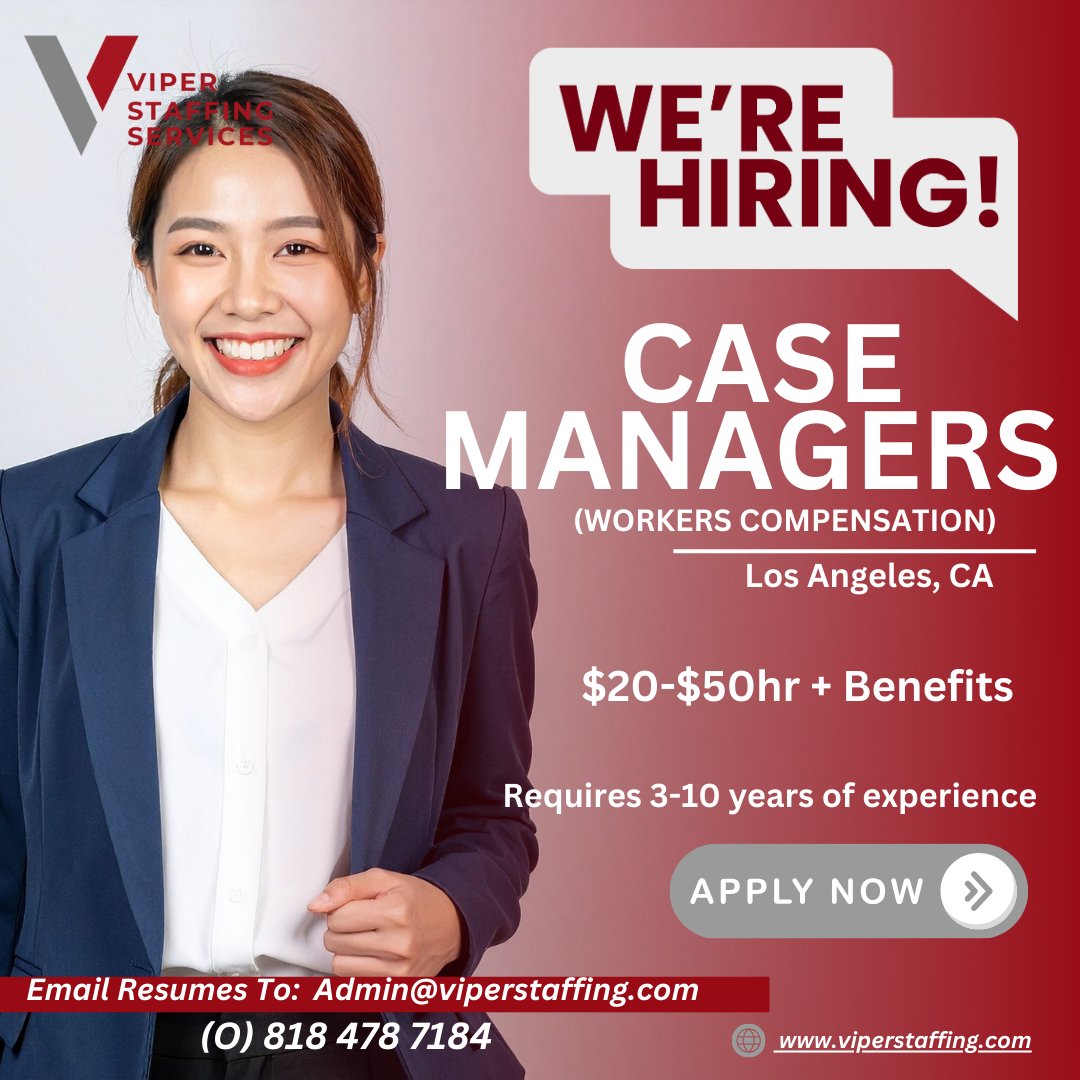 #NowHiring #CaseManagerJobs #WorkersComp #LAJobs #HealthcareCareers #HiringLA #JobOpeniSJB