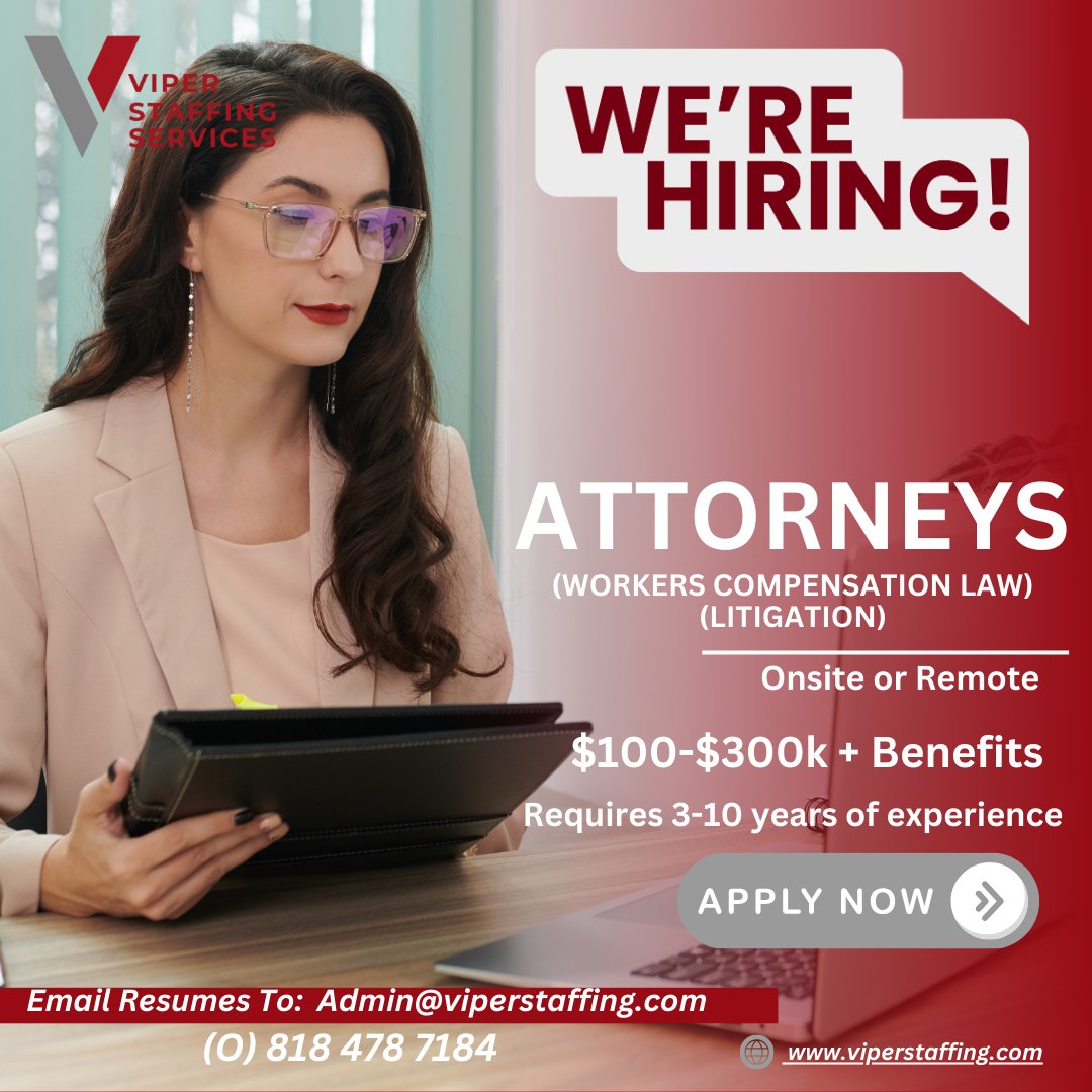 #Hiring #AttorneyJobs #WorkersComp #LitigationLaw #LegalCareers #RemoteJobs #Lawyers #NowHirinUg