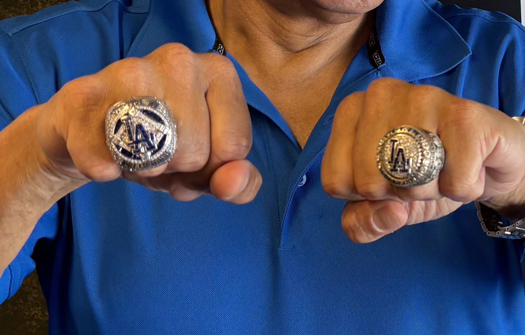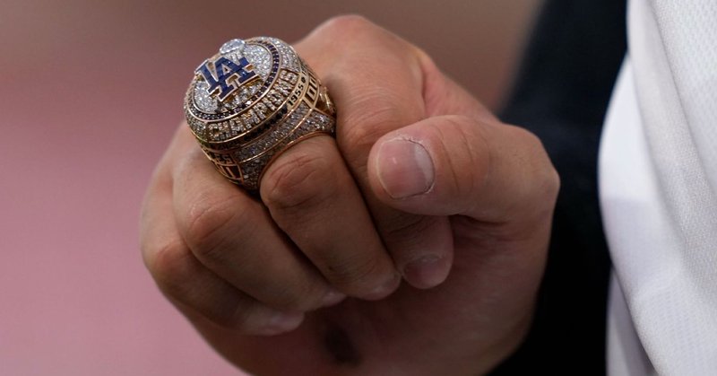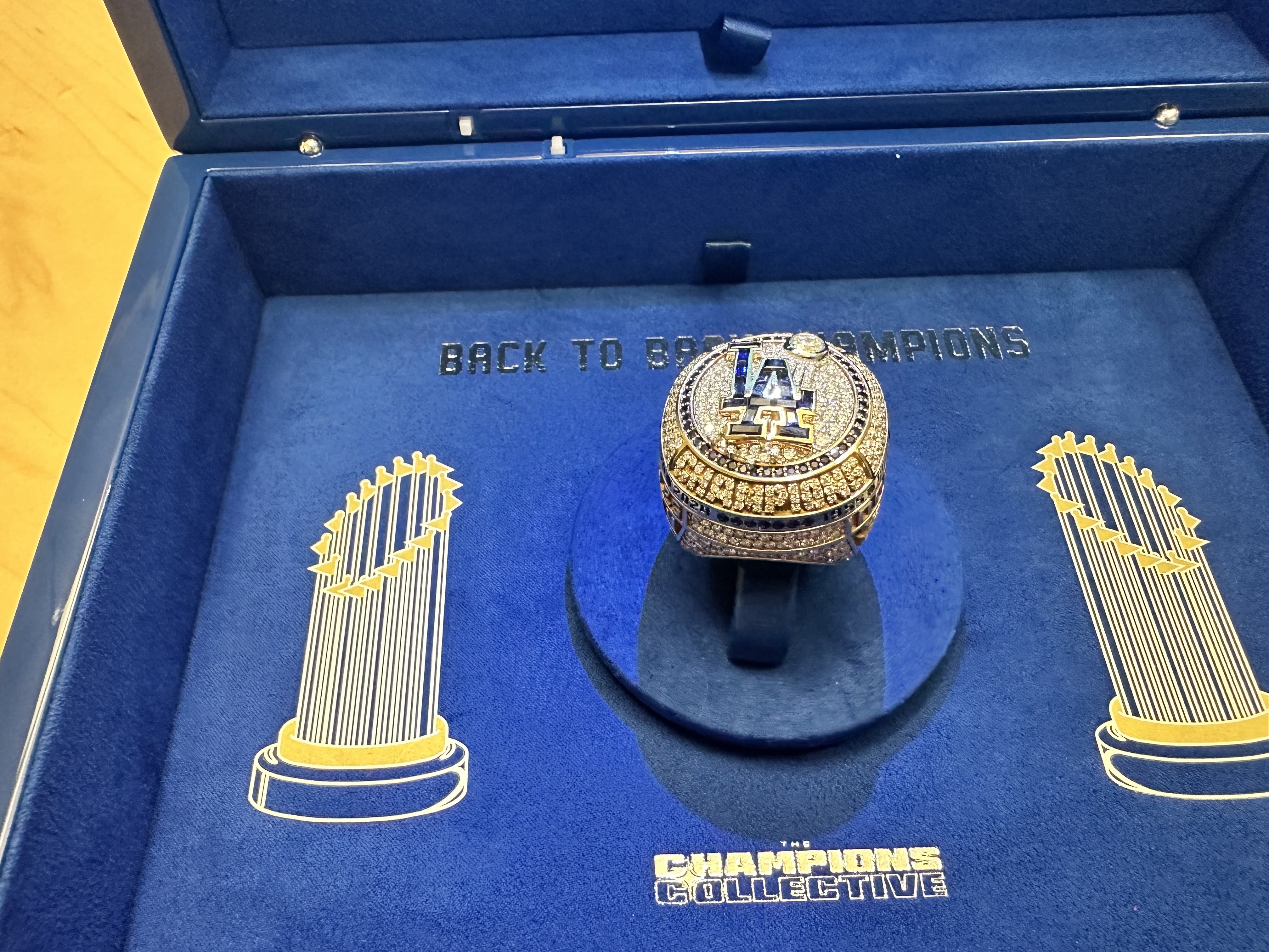 #dodgers#worldseries rings contain dirt from Game 7.86 diamonds spell out world champions. the LA logo has 17 blue sapphires, repping the number of postseason games the team won