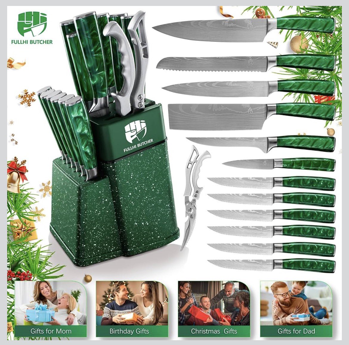 Premium FULLHI BUTCHER Damascus Steel Knife Set 🇦🇪 | Modern Kitchen Aesthetic مجموعة سكاكين دمشقية