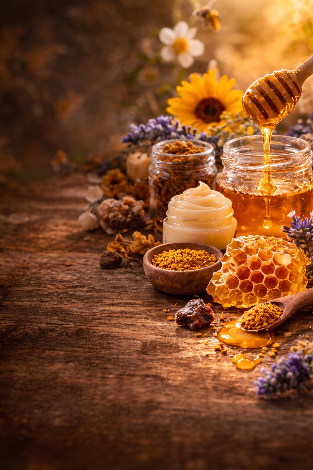 Bee venom. Propolis. Royal jelly. Pollen. Honey.