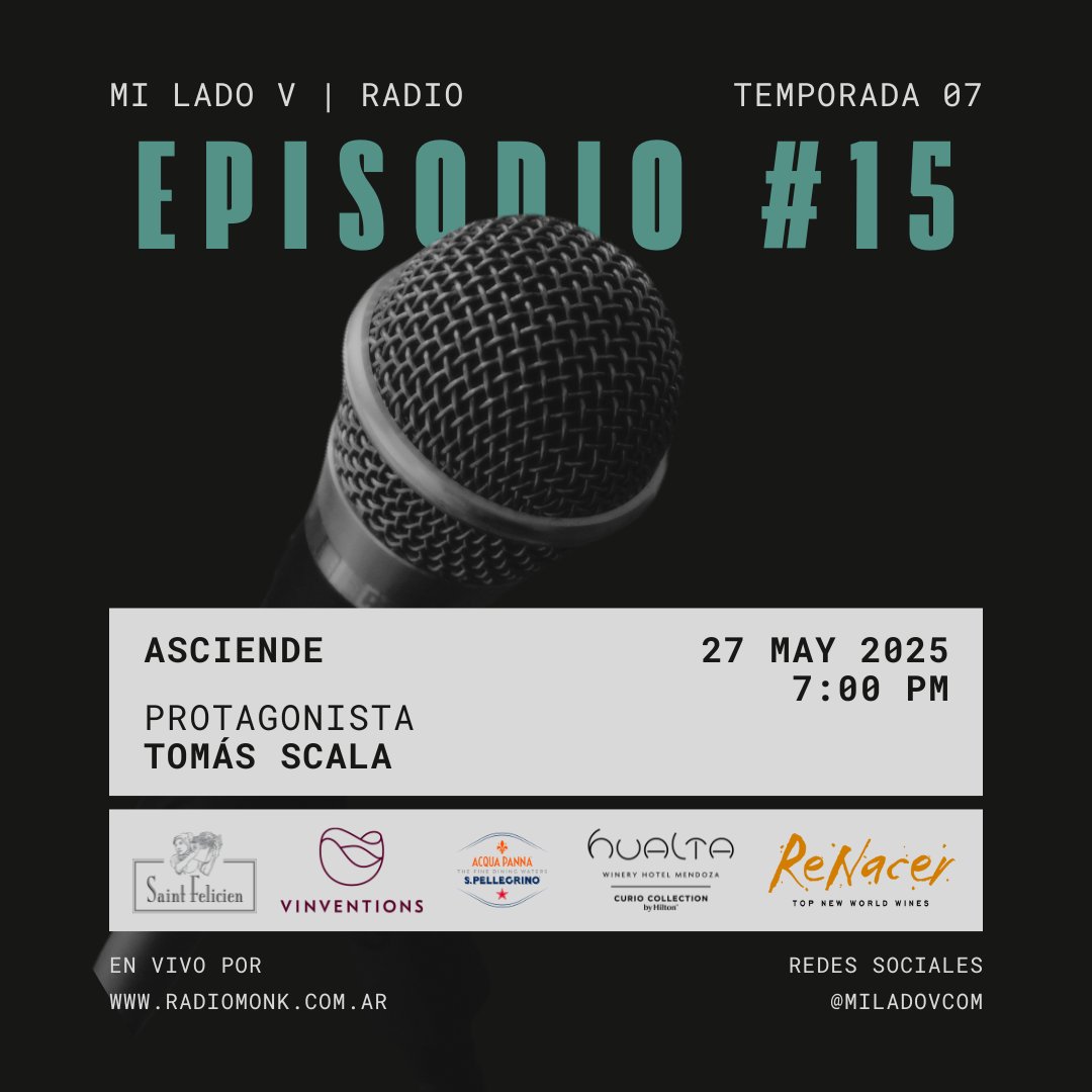 Diego Migliaro @miladovcom · May 26, 2025 🎙️ MLV S07E15 - #Asciende Produce, organiza ferias, comunica y es un apasionado como pocos. Charlamos con el inquieto Tomás Scala sobre… Vinos! . Martes 27, 19hs: �radiomonk.com.arVS . Cheers! �DGUq 63