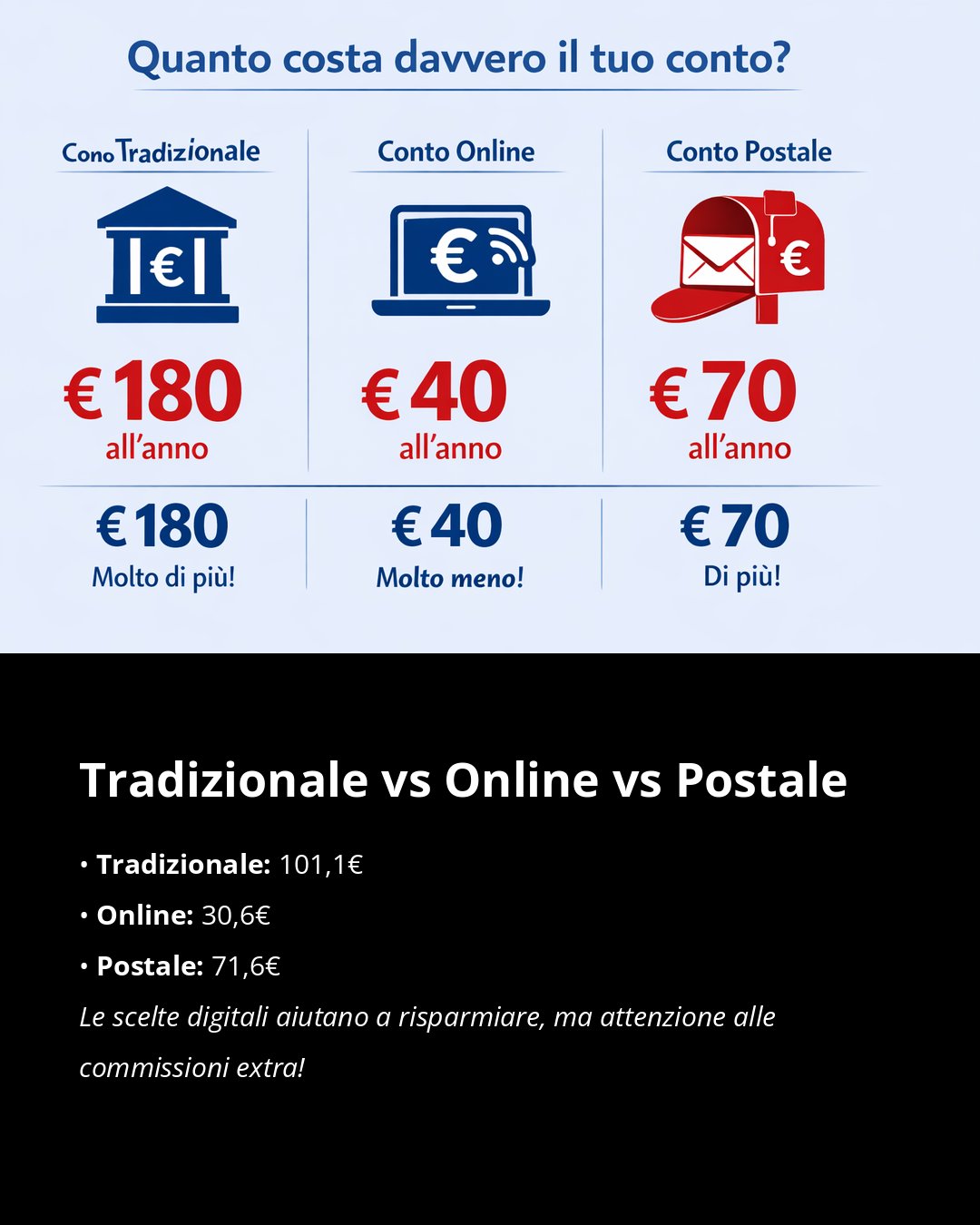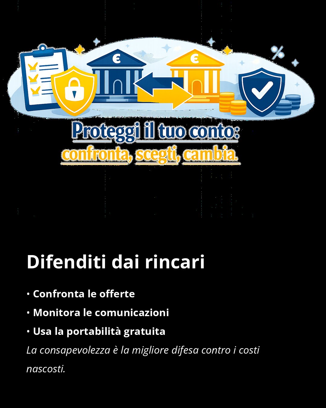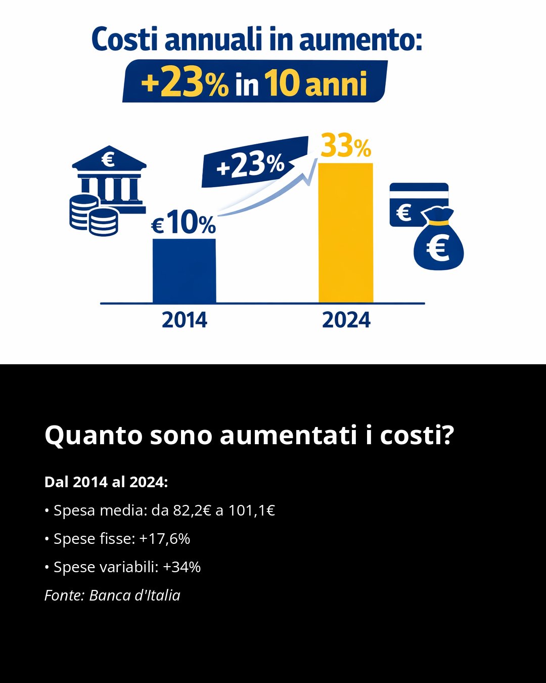 Conti correnti: costi in aumento e spesso nascosti tra commissioni e spese variabili. Sai davvero quanto ti costa il tuo conto ogni anno? Confronta, verifica e resta aggiornato per non pagare più del dovuto! #banche #conticorrenti #risparmio